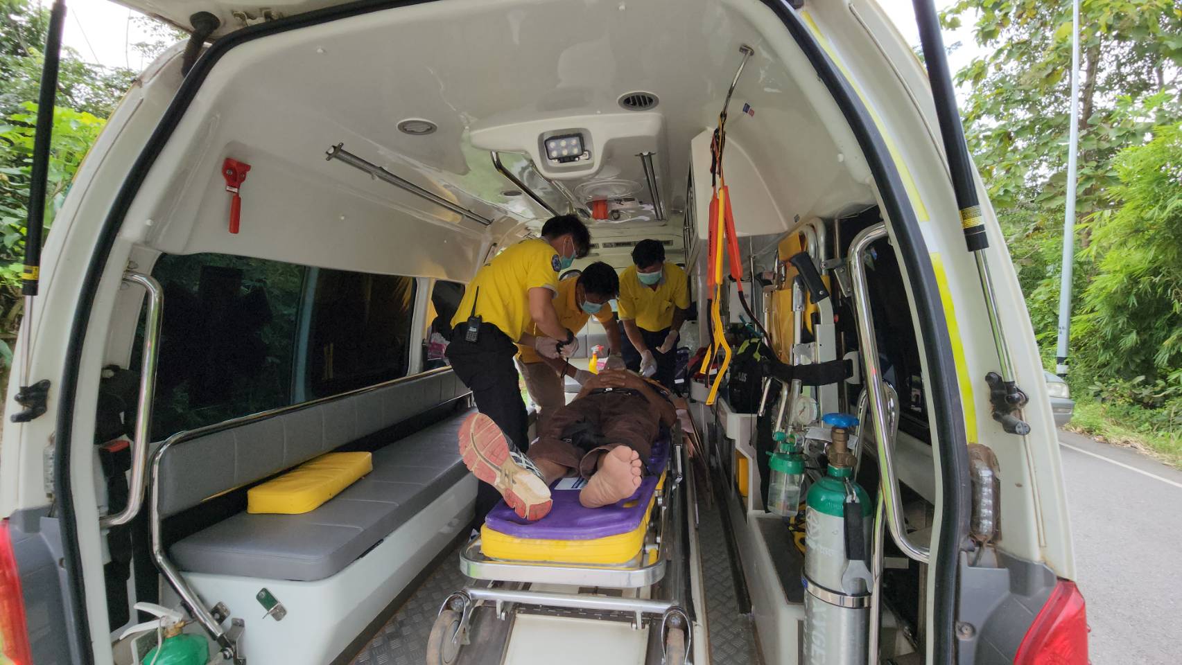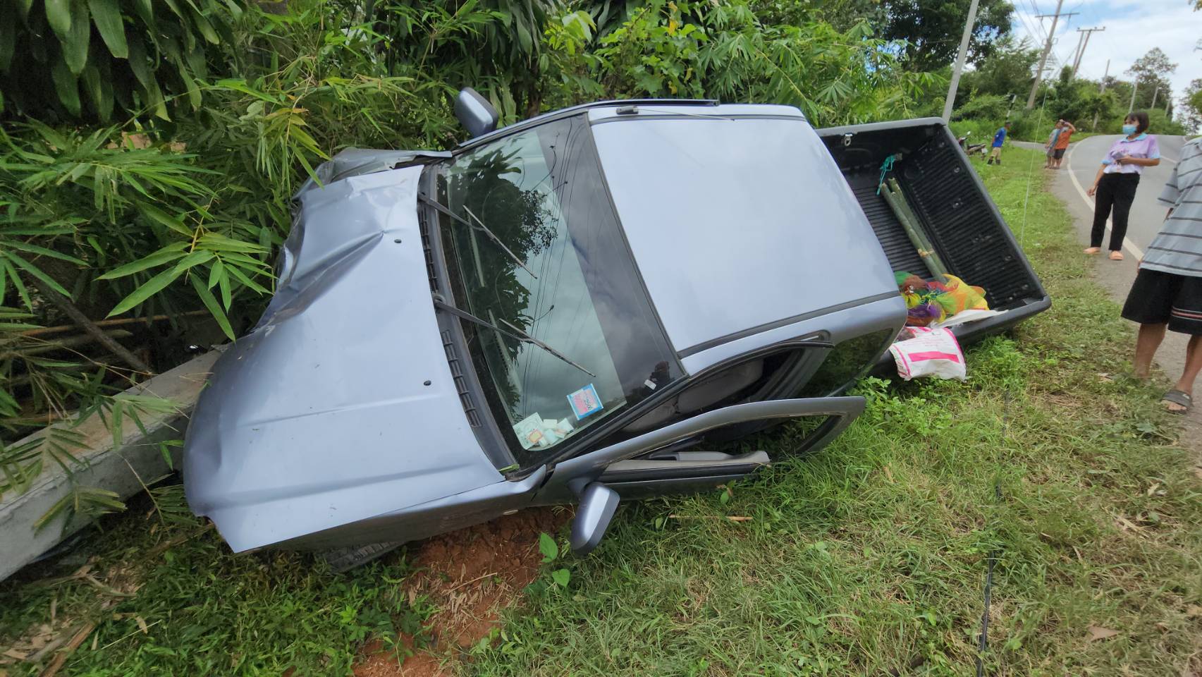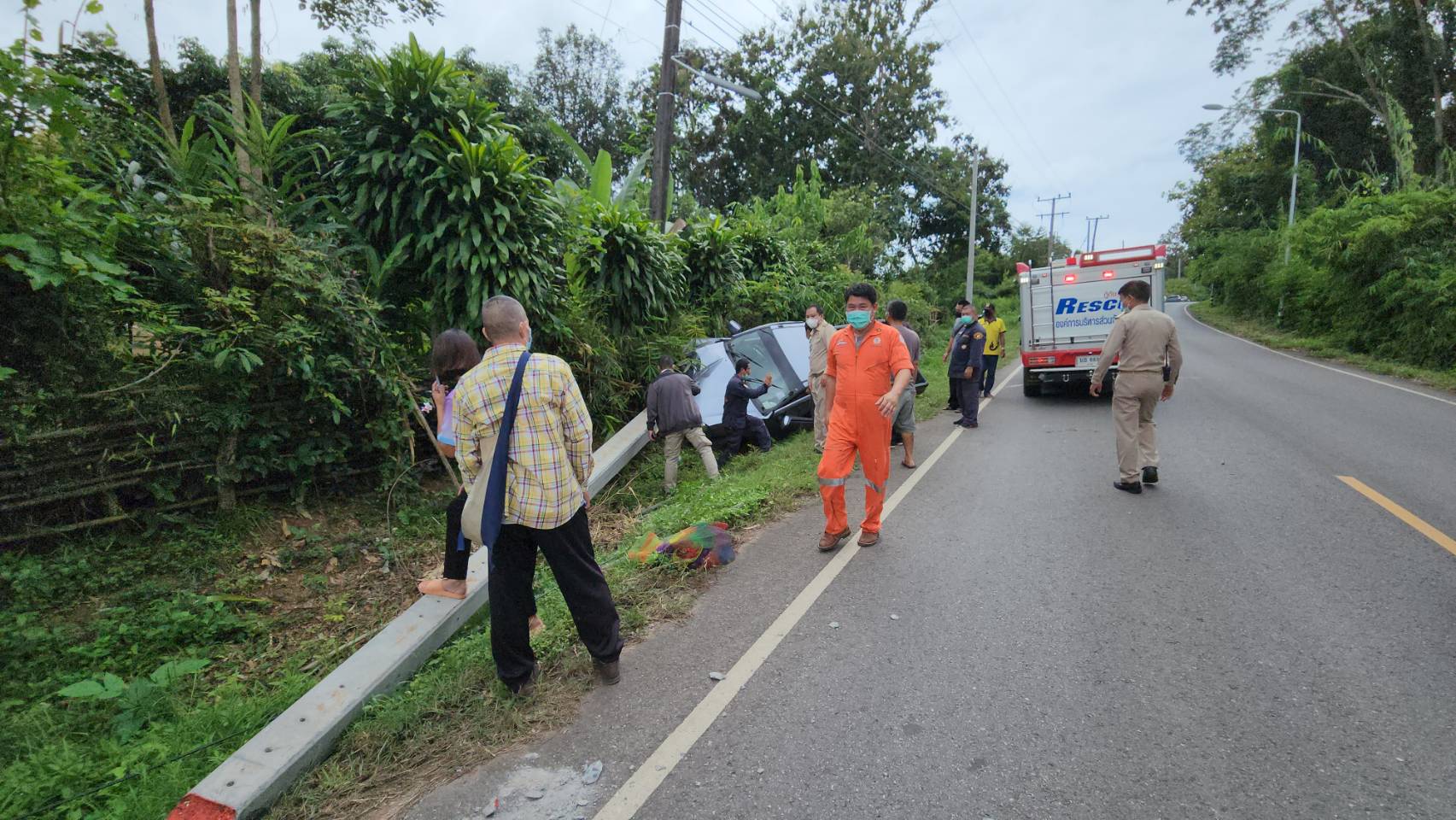 เมื่อวันที่ 3 ตุลาคม 2565 เวลา 11.30 น. รตท.หญิง ภรภรณ์ ไทยใหม่ พงส.สภ.เมืองน่าน ได้รับแจ้งจากศูนย์วิทยุ 191 ตำรวจภูธรจังหวัดน่าน แจ้งว่ามีกระบะชนเสาไฟฟ้ามีผู้ติดอยู่ภายในระหว่างถนนสายบ้านตาแก้ว – บ่อสวก พื้นที่บ้านตาแก้ว หมู่ 6 ตำบลไชยสถาน อำเภอเมืองน่าน จังหวัดน่าน จึงรุดไปตรวจสอบในที่เกิดเหตุพบ ทีมกู้ชีพ อบต.ไชยสถาน ,รถอุปกรณ์ตัดถ่างของ กู้ภัย อบจ.น่าน กำลังพยายาม ให้ความช่วยเหลือนายนิก (นามสมมุติ) อายุประมาณ 68 ปี ได้บาดเจ็บที่ติดอยู่ในรถสามารถนำออกมาได้ปฐมพยาบาลเบื้องต้น ณ จุดเกิดเหตุก่อนนำส่งโรงพยาบาลน่าน โดยมีทีม จนท.ตร.ตู้ยามไชยสถาน อำนวยความสะดวกในที่เกิดเหตุ