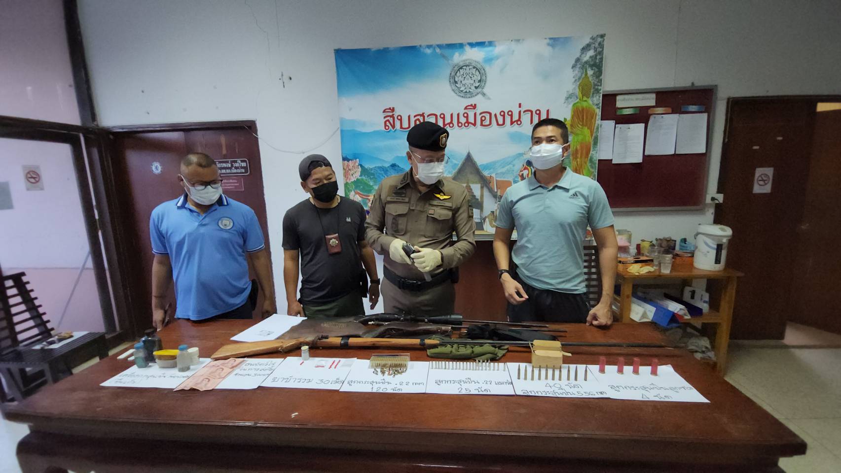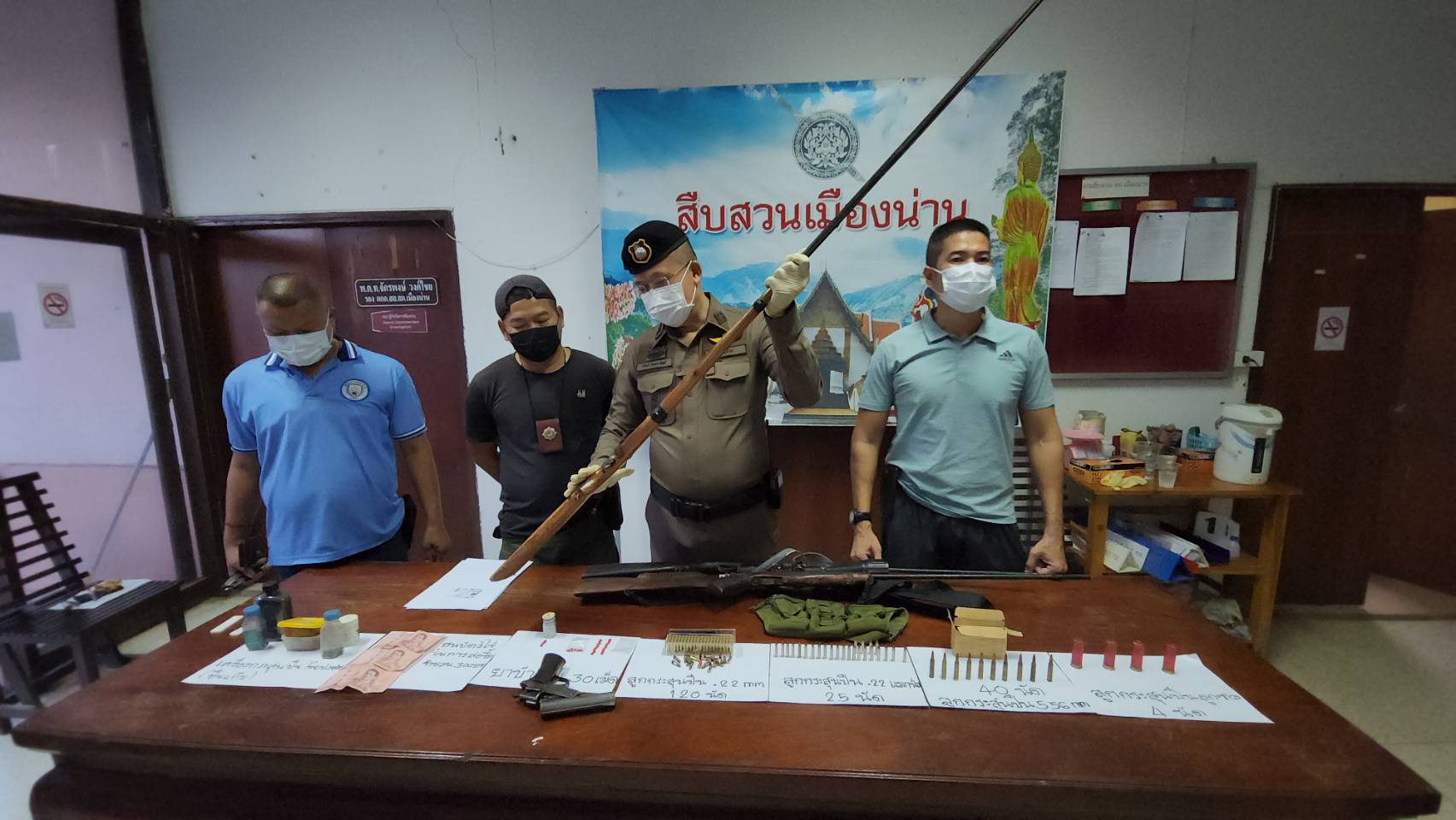 สืบเมืองน่านจับยาค้นห้องพบอาวุธปืนเครื่องกระสุนปืนสงครามเพียบ