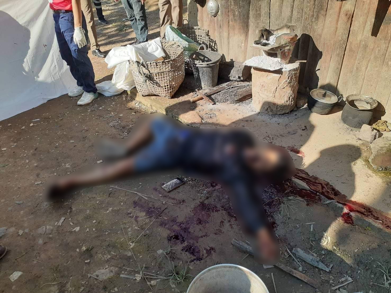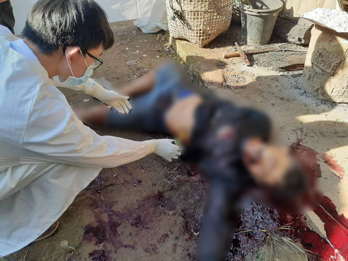 ที่เกิดเหตุอยู่บริเวณข้างบ้าน เลขที่ 16 พบศพเป็นชาย 1 ราย นอนหงายหน้าอยู่ใกล้กับเตาอังโล่ที่วางไว้ข้างบ้าน ตามตัวเต็มไปด้วยบาดแผลถูกฟันด้วยของมีคม ทราบชื่อผู้ตายคือนายไพโรจน์ (สงวนนามสกุล) อายุ 55 ปี ชาวบ้าน ม.8 ต.ดงสุวรรณ อ.ดอกคำใต้ จ.พะเยา สวมเสื้อแขนยาวสีดำ กางเกงยีนส์ขาสั้น ในมือถือมีดพร้าปลายแหลมไว้อยู่ ตรวจสอบพบมีบาดแผลถูกฟันตามร่างกายหลายแห่ง อาทิ หน้าอกซ้าย หน้าท้อง ศรีษะด้านขวา มือขวา ฯลฯ นอนจมกองเลือด โดยผู้ลงมือสังหารก็คือนายจำลอง (สงวนนามสกุล) อายุ 58 ปี ชาวบ้าน ม.4 ต.ดงสุวรรณ อ.ดอกคำใต้ จ.พะเยา รอมอบตัวกับเจ้าหน้าที่ตำรวจพร้อมอาวุธสังหาร