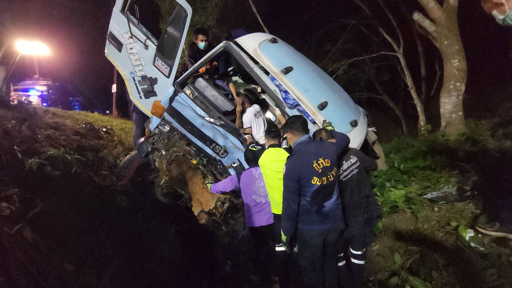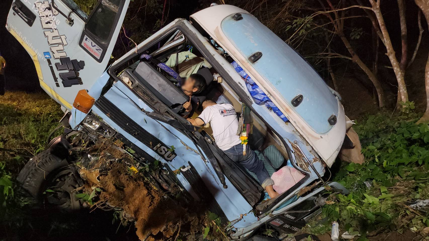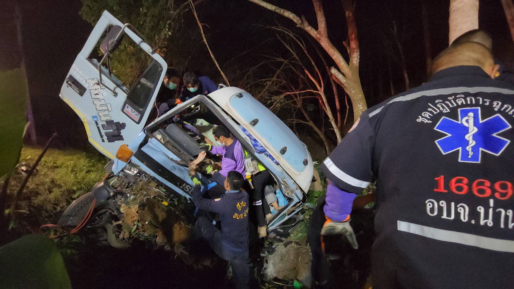 เมื่อวันที่ 7 ตุลาคม 2565 เวลา 22.30 น. พ.ต.ท.สมเกียรติ รวมเงิน พงส.สภ.เมืองน่าน ได้รับแจ้งจากศูนย์วิทยุ 191 ตำรวจ ภ.จ.น่าน แจ้งว่ามีเหตุรถบรรทุก 6 ล้อ เสียหลักลงข้างทางที่บ้านสาระสุขสันต์ หมู่ 6 ต.บ่อ อ.เมืองน่าน มีผู้ติดภายในรถ 2 คน จึงรุดไปตรวจสอบในที่เกิดเหตุ สถานที่เกิดเหตุซึ่งเป็นถนนขึ้นเขาลงเขาเป็นทางโค้งลาดชันตรงจุดเกิดเหตุเป็นทางโค้ง
