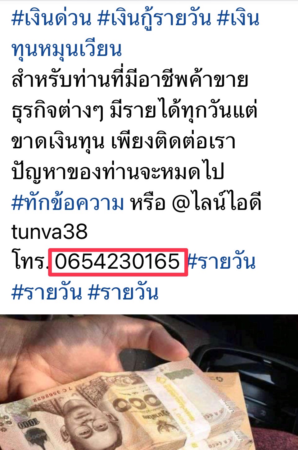 นายวชิรศักย์ เล่าว่า ที่บริเวณตลาดใหม่แม่กรณ์ ซึ่งตั้งอยู่ในพื้นที่ ต.รอบเวียง อ.เมืองเชียงราย ได้รับความเดือดร้อนจากการที่มีแก๊งค์เงินกู้รายวัน ได้มาโปรยนามบัตรในบริเวณตลาดเป็นประจำทุกวัน สร้างความสกปรกในตลาด พ่อค้าแม่ค้าต้องคอยเก็บกวาดไปทิ้งถังขยะทุกวัน และในวันนี้ก็พบว่ามีนามบัตรถูกนำมาโปรยทิ้งในตลาดอีก ตนจึงเลือกเอาหนึ่งในนามบัตรที่ถูกนำมาโปรยในตลาด ซึ่งปรากฏชื่อเป็นของบริษัทเงินทุนแห่งหนึ่ง โดยในนามบัตรระบุว่า รับปรึกษาเรื่องเงิน มีเบอร์โทรหมายเลข 065-423xxxx ระบุในนามบัตร ตนจึงโทรไปตามหมายเลขที่แจ้งในนามบัตร แต่คนรับปลายสายมีท่าทีไม่พอใจ บอกว่าลูกน้องไม่ว่างมาเก็บคืน และยังข่มขู่ว่าวันหน้าจะเอาระเบิดมาโปรยแทนนามบัตรด้วย ตนเกรงจะไม่ปลอดภัยกับพ่อค้าแม่ค้าในตลาด จึงขอให้ทางเจ้าหน้าที่ที่ดูแลตลาดตรวจสอบกล้องวงจรปิด ที่หน้าตลาด พบว่าช่วงเวลาประมาณ 05.25 น. ของวันนี้ ได้มีกลุ่มบุคคลขับขี่รถบิ๊กไบค์ สีแดง ได้ขี่เข้ามาในตลาดวนเวียนภายในตลาด และนำนามบัตรบริษัทเงินกู้มาโปรยตามจุดต่างๆทั่วบริเวณ