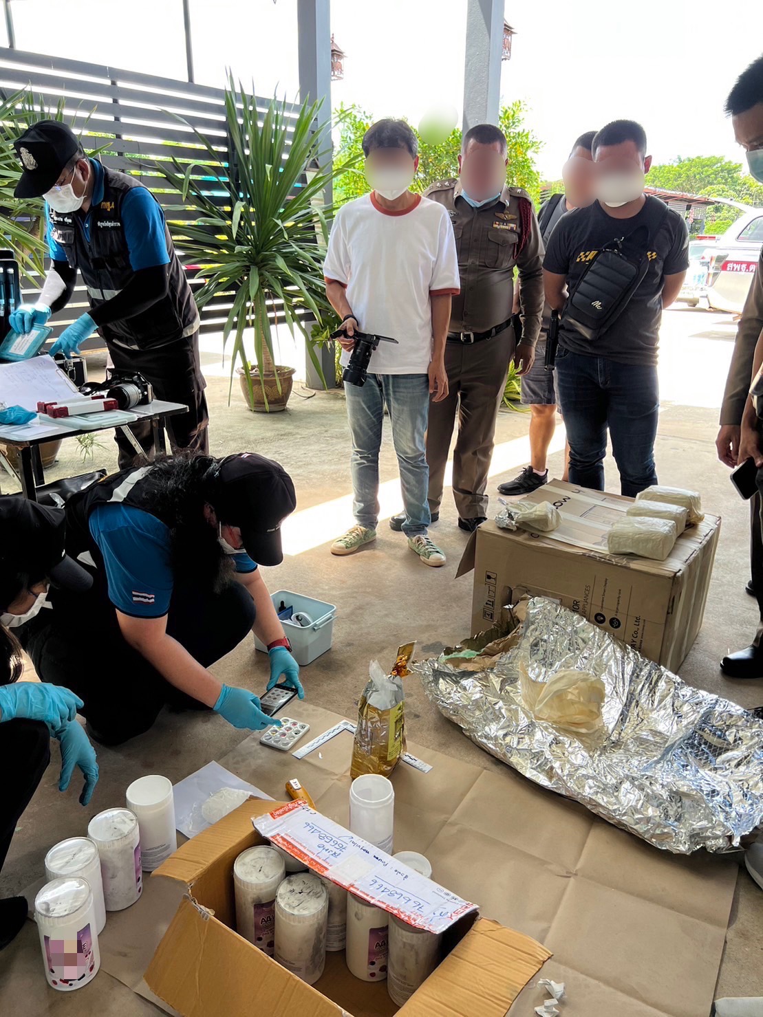วันนี้ (16 ตุลาคม 2565) นายวิชัย ไชยมงคล เลขาธิการคณะกรรมการป้องกันและปราบปรามยาเสพติด (เลขาธิการ ป.ป.ส) เผยถึงการขยายผลจนนำไปสู่การออกหมายจับ 2 ผู้ต้องหารายสำคัญ สืบเนื่องจากเมื่อวันที่ 8 ตุลาคม 2565 สภ.เมืองหนองคาย รับแจ้งจาก พลเมืองดี ชาว จ.เพชรบูรณ์ กรณีพบวัตถุต้องสงสัยซุกซ่อนยาเสพติดและจากการตรวจสอบพบไอซ์ 4 กิโลกรัม ซุกซ่อนในเครื่องกรองน้ำและไอซ์ 4 กิโลกรัม ในกระปุกใส่ครีม 11 กระปุก รวมไอซ์ของกลาง 8 กก. เหตุเกิดที่ ห้องพักภายในรีสอร์ท พื้นท่บ้านค่ายบกหวาน ต.สองห้อง อ.เมือง จ.หนองคาย ซึ่งจากการสอบถาม พลเมืองดีให้ข้อมูลว่า ได้รับการติดต่อจากคนรู้จักว่าจะพาไปทำงานที่ สปป.ลาว จึงมาเข้าพักที่รีสอร์ทดังกล่าวพร้อมครอบครัวเพื่อรอเดินทางไปเวียงจันทน์ จากนัน ในช่วงเช้าประมาณ 7.00 น. (ของวันที่ 8 ต.ค.) คนรู้จักโทรมาแจ้งว่าให้ช่วยนำส่งพัสดุ 2 กล่อง แล้วจึงจะมา รับพาไปทำงานท่ี สปป.ลาวจากนั้นพบรถตู้สีขาว ทะเบียนของสปป.ลาว ขับเข้ามาหาท่ีหน้าห้องพักนำพัสดุ 2 กล่อง มาให้ แล้วรีบขับรถออกไป แต่รู้สึกผิดสังเกตเกรงว่าจะมีสิ่งผิดปกติ จึงแจ้งเจ้าหน้าที่เข้ามาตรวจสอบพบจนกระทั่งพบของกลางยาเสพติดดังกล่าว