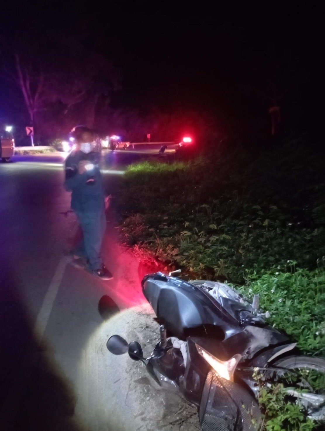 ที่เกิดเหตุอยู่บนถนนทางหลวงหมายเลข 1152 ช่วงขุนตาล-พญาเม็งราย ก่อนถึงสะพานข้ามแม่น้ำอิง เมื่อไปถึงก็พบรถจักรยานยนต์ยี่ห้อฮอนด้า เวฟ ทะเบียน เชียงราย ล้มอยู่บริเวณพงหญ้าริมถนนฝั่งมุ่งหน้า อ.พญาเม็งราย สภาพพังเสียหาย และที่ราวเหล็กกั้นทางโค้งที่ถนนฝั่งมุ่งหน้า อ.ขุนตาล มีร่องรอยถูกชนเสียหาย และตรวจสอบพบศพผู้เสียชีวิตอยู่ในพงหญ้าใกล้กับราวเหล็ก ทราบชื่อในภายหลังคือนายณัฐพล (สงวนนามสกุล) อายุ 24 ปี ชาวบ้าน ต.สบเปา อ.พญาเม็งราย จ.เชียงราย ไม่มีชีพจร ตรวจไม่พบบาดแผลภายนอก เสียชีวิตในที่เกิดเหตุ กู้ภัยนำส่งร่างผู้เสียชีวิตเพื่อชันสูตรโดยละเอียดที่ รพ.ขุนตาล