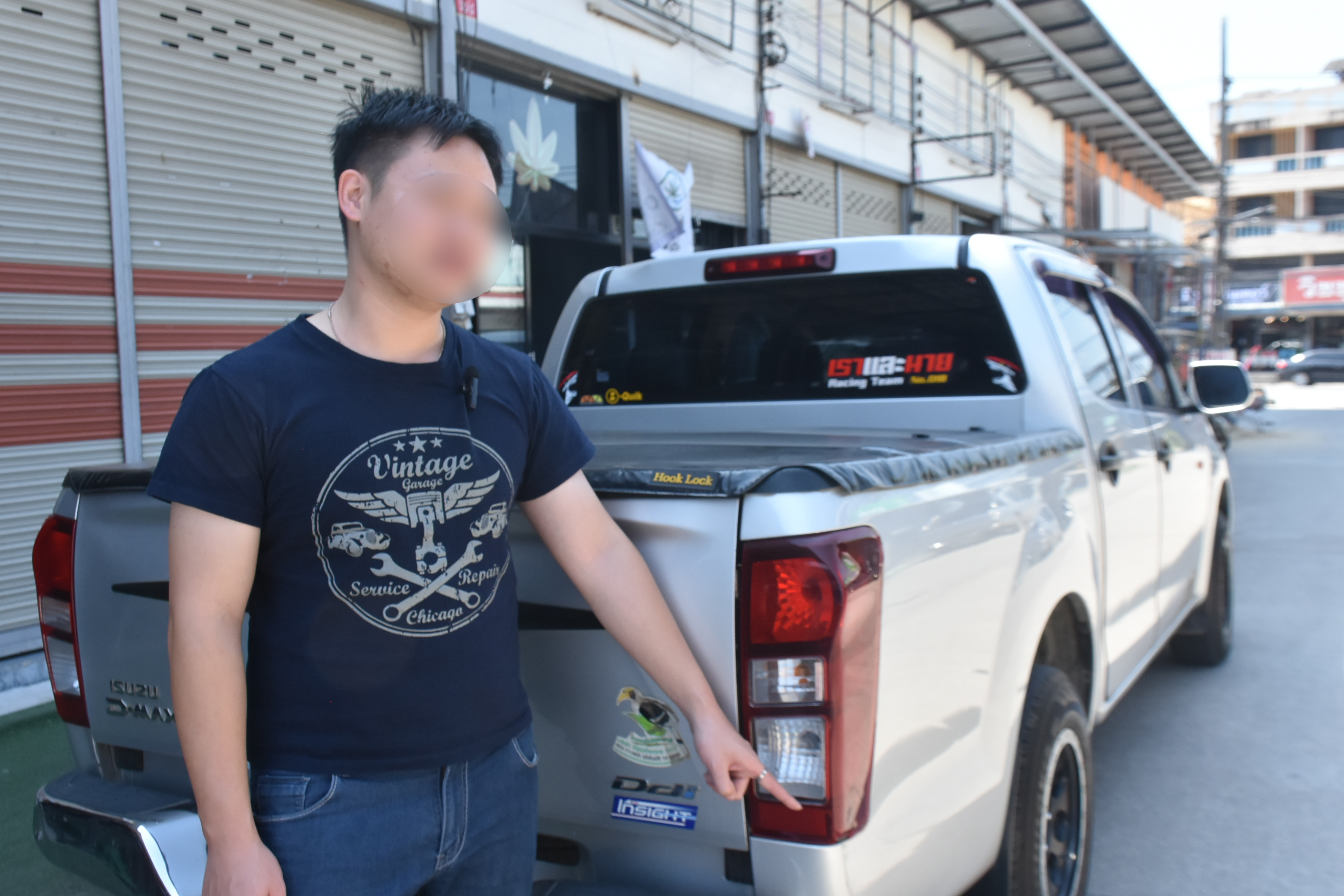 ผู้สื่อข่าวลงพื้นที่สอบถามผู้เสียหายคือ นายณัฐวัตร ทวีวัฒนสมบูรณ์ อายุ 27 ปี บ้านเลขที่ 263/14 ม.9 ต.รอบเวียง อ.เมืองเชียงราย จ.เชียงราย เผยกับผู้สื่อข่าวว่า ตนทำงานเป็นช่างภาพและขับรถแกร๊ปคาร์รับส่งผู้โดยสาร วันที่เกิดเหตุคือวันที่ 9 ต.ค. ที่ผ่านมาช่วงเวลาประมาณ 23.00 น. ตนกลับจากไปส่งลูกค้า กำลังขับรถจะมุ่งหน้ากลับบ้าน โดยขับผ่านถนนหน้าร้านตะวันแดงและจะเลี้ยวออกไปถนนพหลโยธินเส้นตัดผ่านในตัวเมือง แต่เมื่อขับมาถึงแถวร้านเฮาบาร์ ได้มีรถยนต์เก๋งยี่ห้อ BMW สีดำ ป้ายแดง ไม่ทราบเลขทะเบียน ได้ขับมาสวนทางกัน ตนเห็นว่าถนนแคบเพราะมีร้านค้านำเก้าอี้มาวางริมทาง จึงหลบไปทางซ้ายมือ ซึ่งมีร้านหมึกย่างตั้งอยู่ริมทาง แต่รถหรูดังกล่าวก็ขับมาเบียดรถของตน และขับออกไปโดยไม่จอดเจรจา ตนจึงจอดรถไว้ข้างทางและวิ่งติดตามรถคันดังกล่าว แต่รถหรูกลับขับหลบหนีไปอย่างรวดเร็ว ตนเองวิ่งตามไม่ทัน
