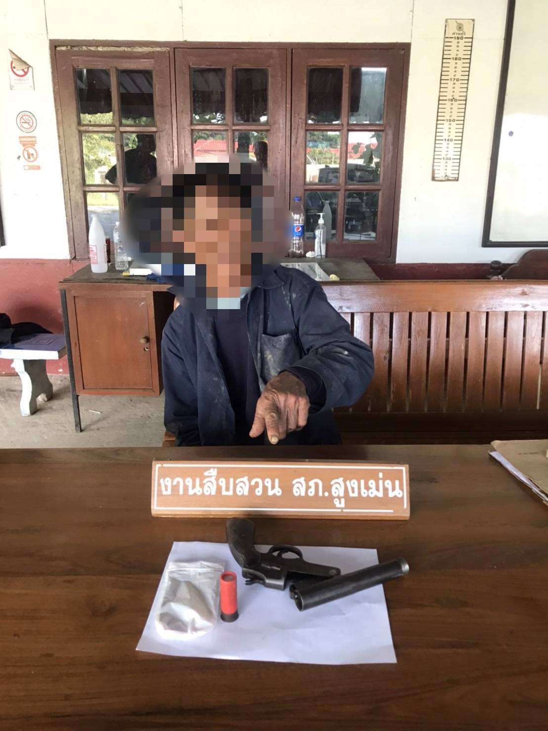 ศป.ปส.อ.สูงเม่น ลุยต่อเนื่องรวบพ่อเฒ่าวัย 71ปี ยุ่งยาเสพติดพร้อมปืนเถื่อน