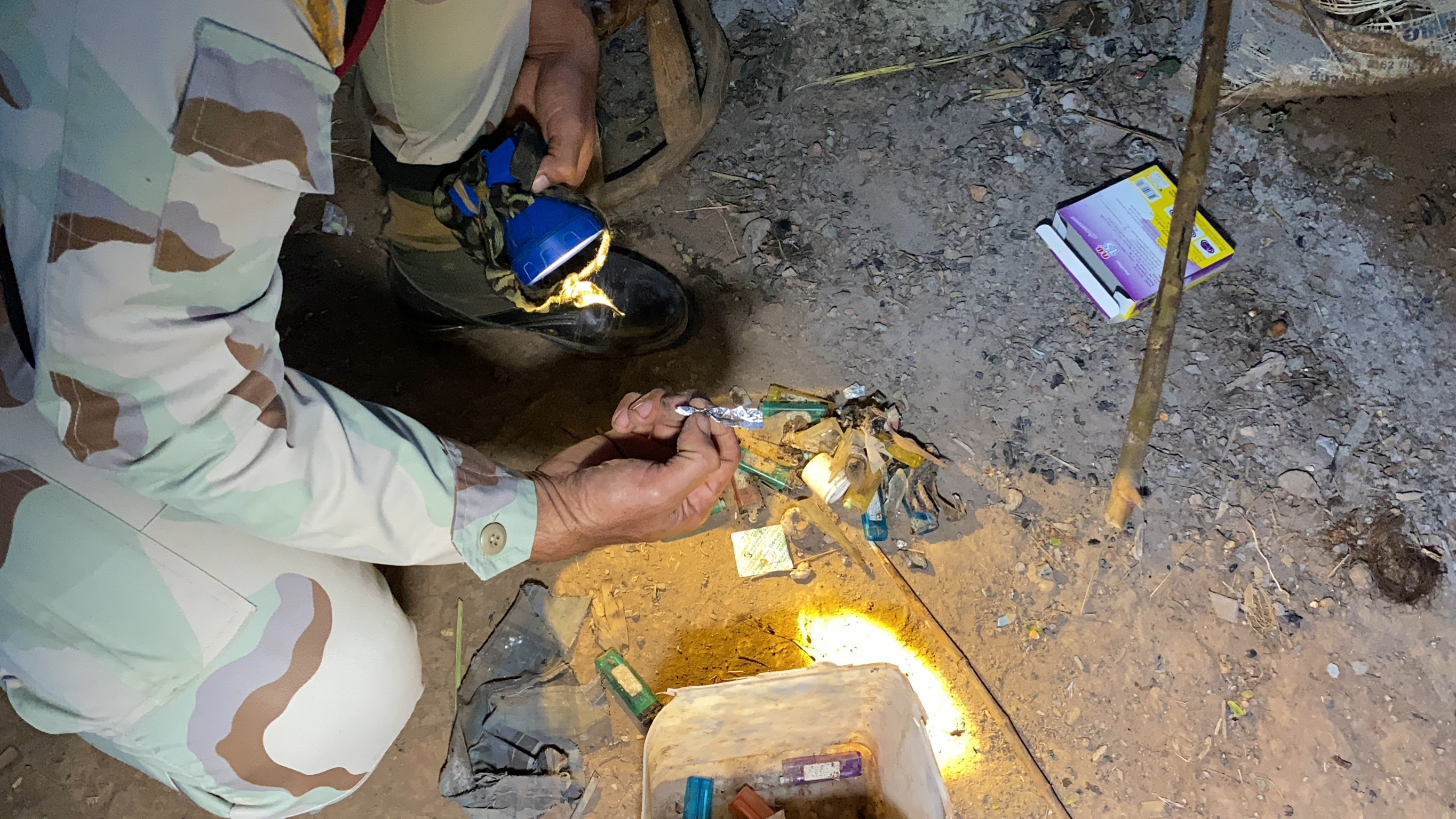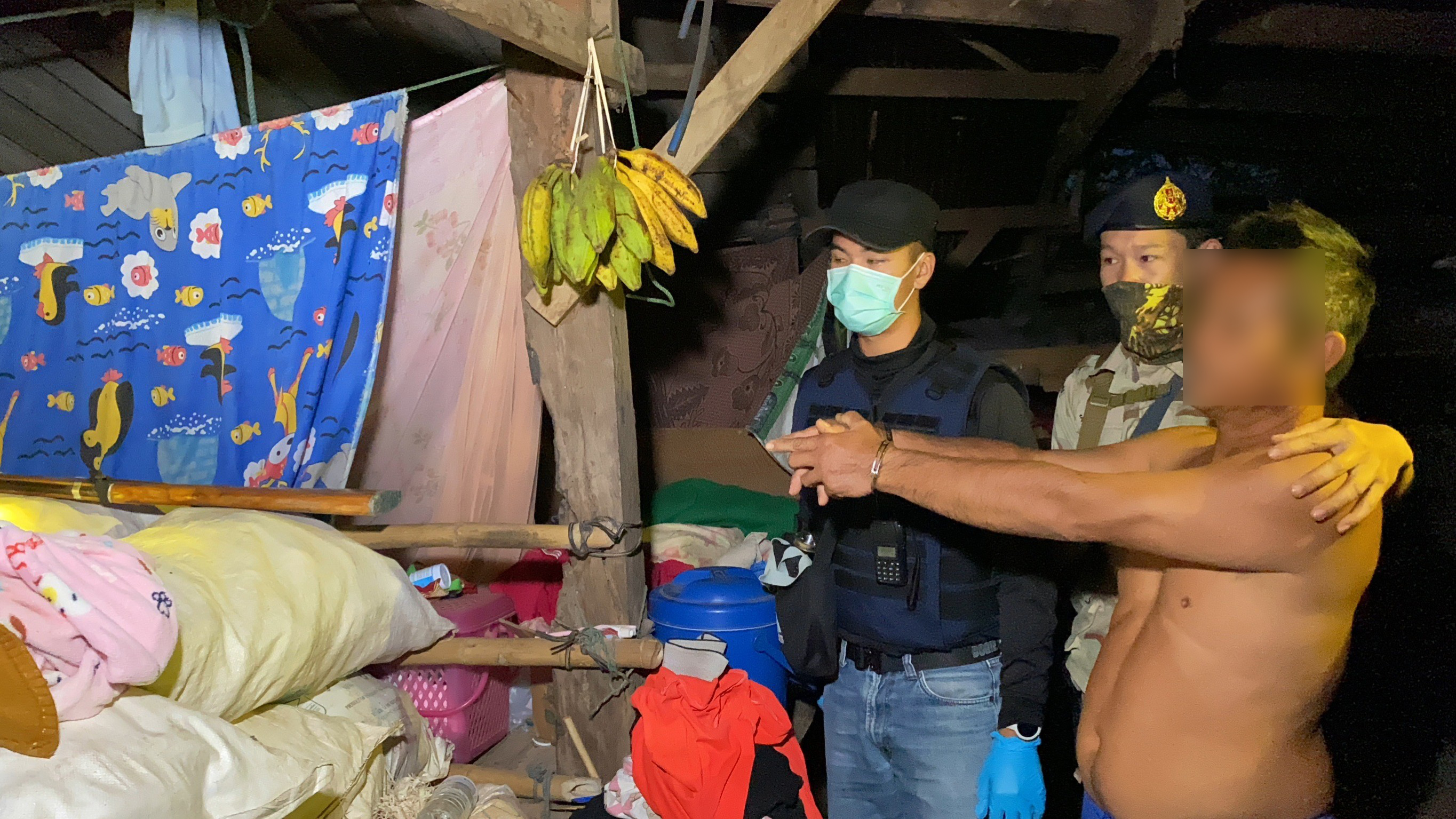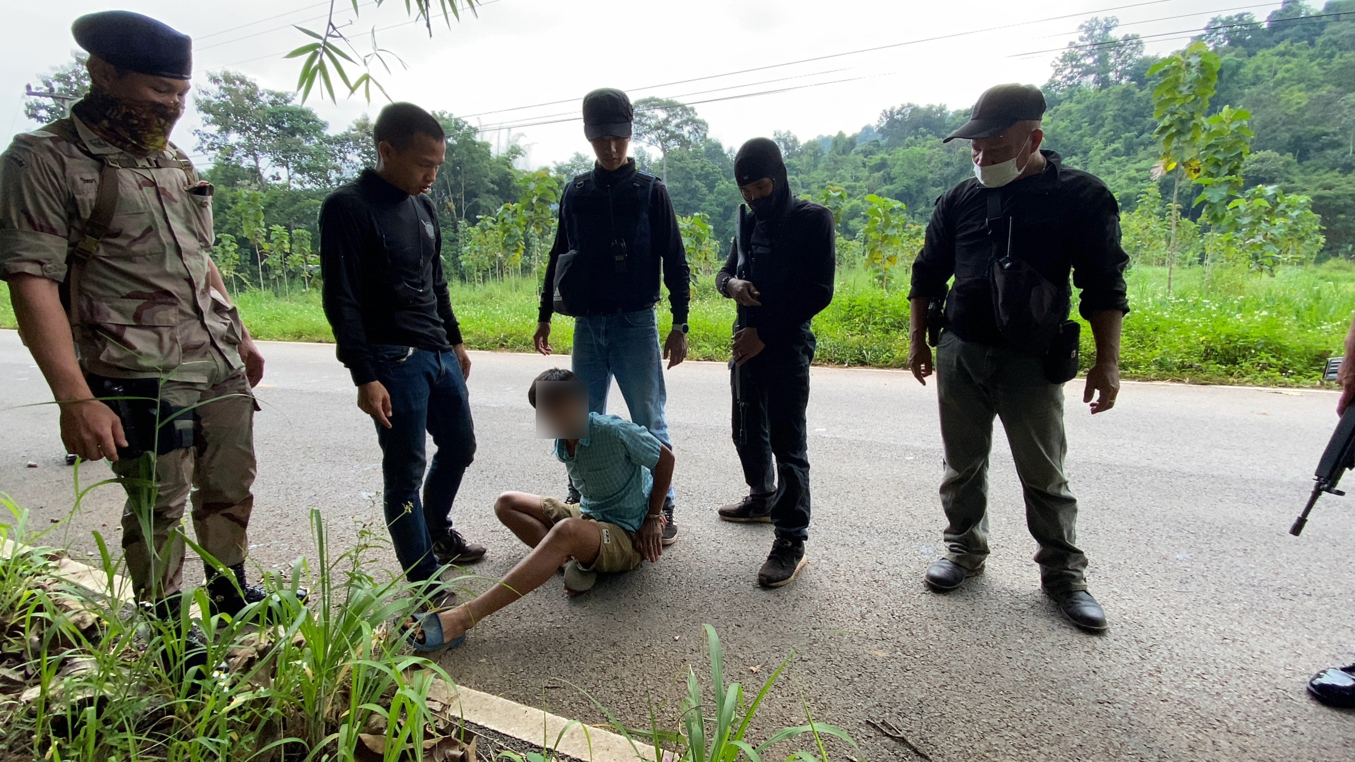 จากนั้นจึงนำกำลังเข้าตรวจค้นพื้นที่เป้าหมายที่ 2 และที่ 3 พร้อมกัน โดยพื้นที่ ที่ 2 ผู้ต้องสงสัยได้คว้ามีดดาบยาวกว่า 1 เมตร ฟันเจ้าหน้าที่เพื่อเปิดทางแต่ไม่ถูกเจ้าหน้าที่ จึงฉวยโอกาสกระโดดข้ามคลองหนีเข้าป่า เจ้าหน้าที่สามารถวิ่งตามจับกุมได้ในเวลาต่อมา