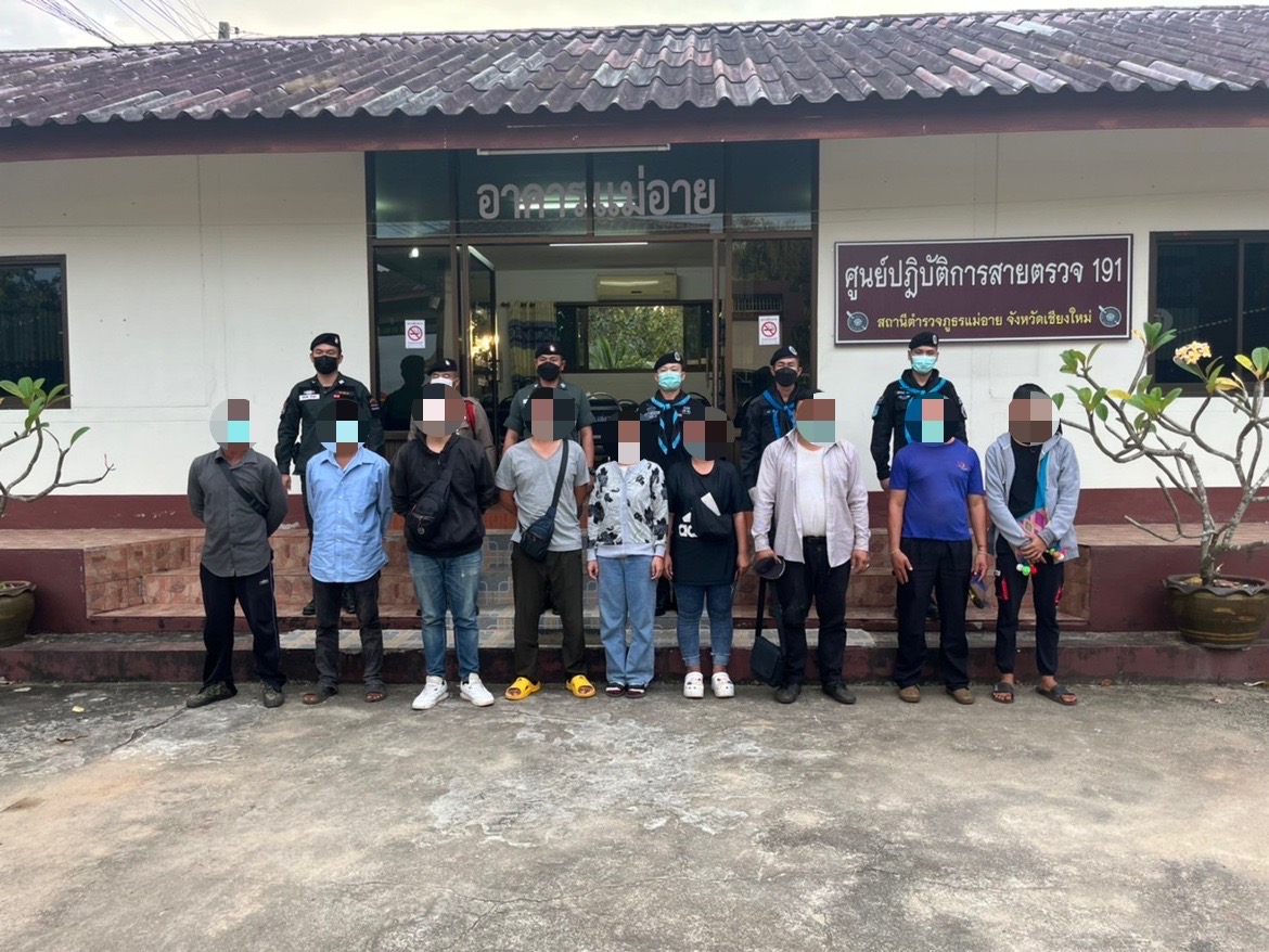 ห้วงเช้าวันที่ 21 ต.ค. 65 กองกำลังผาเมือง โดย กองบังคับการควบคุมทหารพรานศูนย์ปฏิบัติการกองทัพภาคที่ 3 ปฏิบัติภารกิจลาดตระเวนเฝ้าตรวจ บริเวณ ช่องทางธรรมชาติแก่งทรายมูล บ้านร่มไทย ต.ท่าตอน อ.แม่อาย จ.เชียงใหม่ ได้ตรวจพบกลุ่มบุคคล จำนวน 9 คน เดินเท้าเข้ามาตามภูมิประเทศ เจ้าหน้าที่จึงได้ขอทำการตรวจค้น พบเป็นผู้ลักลอบหลบหนีเข้าเมืองโดยผิดกฎหมาย หน่วยจึงได้ควบคุมตัวส่งตำรวจในพื้นที่ ดำเนินคดีตามกฎหมายต่อไป และต่อมาในห้วงบ่ายของวันดังกล่าวหน่วยเฉพาะกิจกรมทหารม้าที่ 5 กองกำลังผาเมือง ปฏิบัติภารกิจลาดตระเวนเฝ้าตรวจ บริเวณ บ้านหลวง ต.แม่งอน อ.ฝาง จ.เชียงใหม่ ได้ตรวจพบรถยนต์กระบะต้องสงสัย มีผู้โดยสารมาเต็มคัน จึงขอทำการตรวจค้น พบเป็นผู้ลักลอบเข้าเมืองโดยผิดกฎหมาย จำนวน 6 คน และผู้นำพา จำนวน 1 คน จากการสอบถาม บุคคลดังกล่าวให้การว่า ได้เดินทางมาจากประเทศเพื่อนบ้าน โดยใช้ช่องทางธรรมชาติในพื้นที่ เพื่อจะไปหางานทำในพื้นที่ จ.เชียงใหม่ หน่วยจึงได้นำผู้ต้องหาทั้งหมดส่งให้ตำรวจในพื้นที่ ดำเนินคดีตามกฎหมายต่อไป