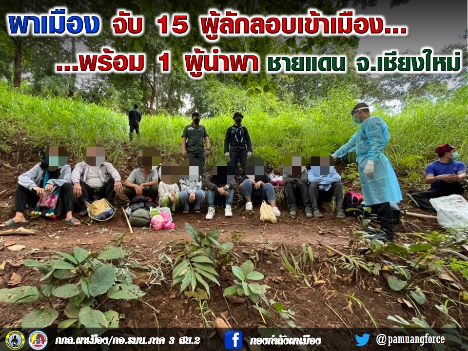 ผาเมือง จับ 15 ผู้ลักลอบเข้าเมือง พร้อม 1 ผู้นำพา ชายแดน จ.เชียงใหม่