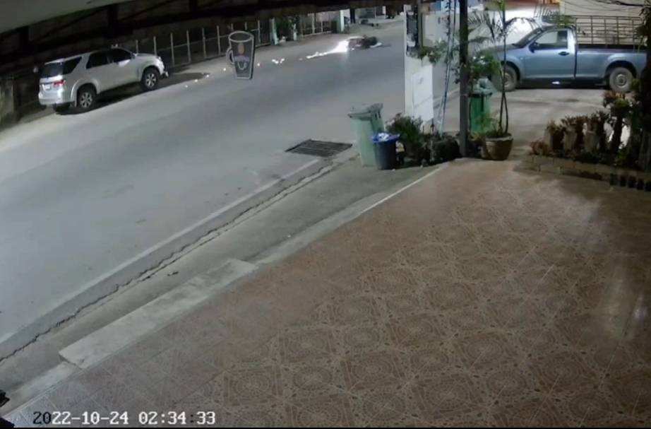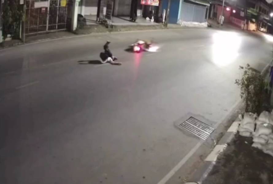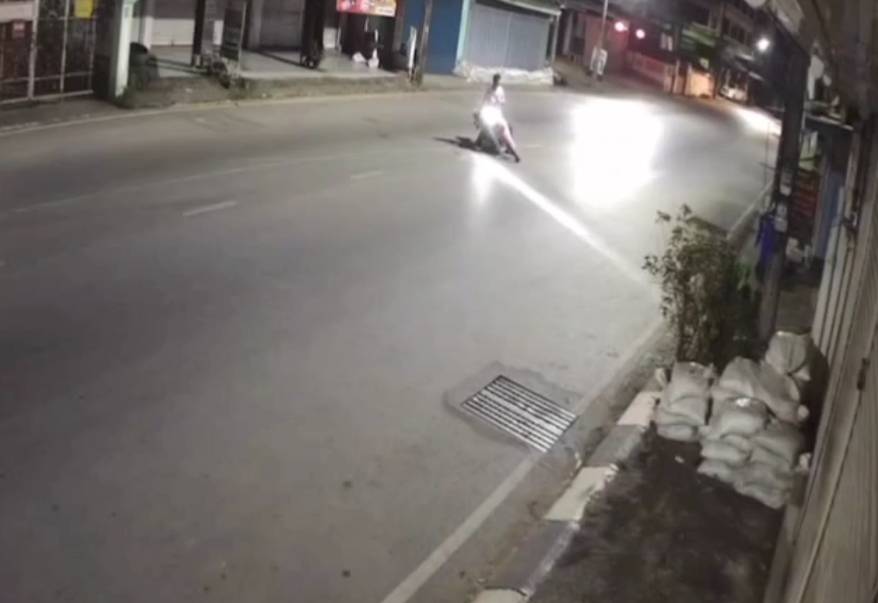 เปิดคลิปหนุ่มแม่สาย ขี่ จ.ย.ย.เสียหลักหลุดโค้ง พุ่งชนฟอร์จูนเนอร์จอดข้างทาง ก่อนขี่หลบหนี