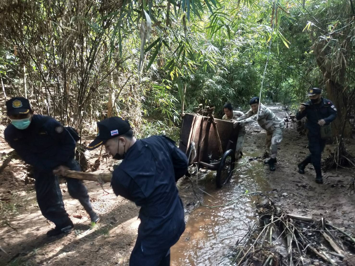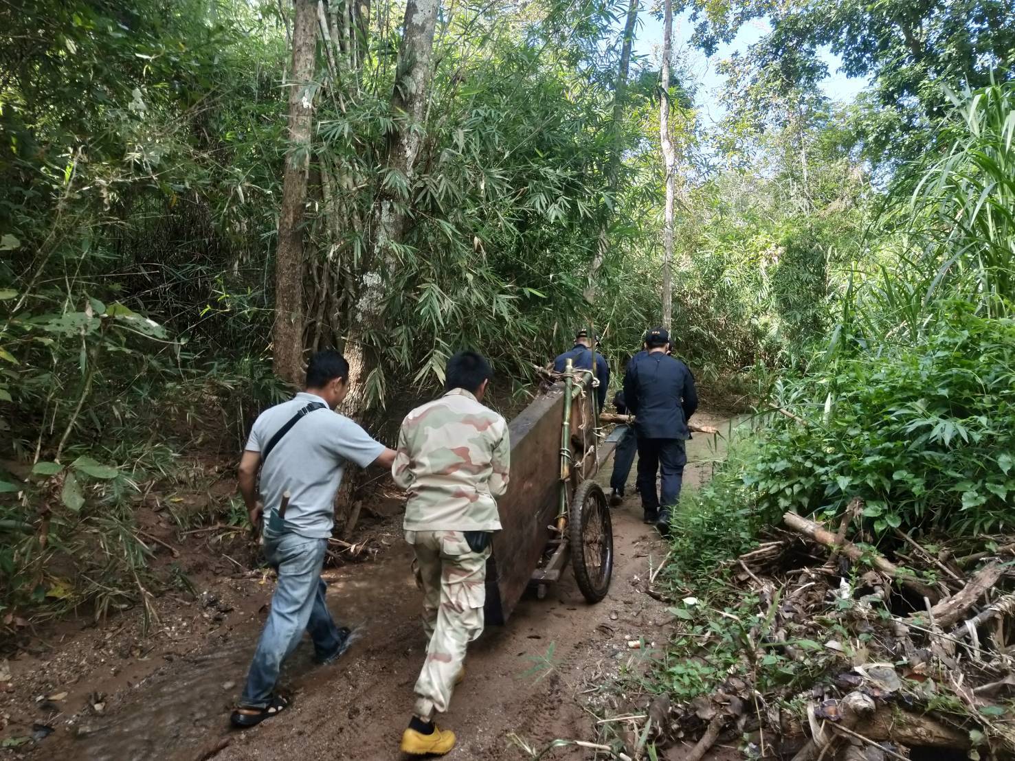 น.ส.พัทธนันท์ พิทาคำ นอภ.แม่แจ่ม จึงได้มอบหมายให้ นายกิตติพงษ์ ธิวงศ์ ปลัดฝ่ายความมั่นคง นำกำลังสมาชิก อส.ร้อย อส.อ.แม่แจ่ม 7 ร่วมกับ เจ้าหน้าที่ตำรวจ สภ.แม่แจ่ม เจ้าหน้าที่หน่วยป้องกันและพัฒนาป่าไม้แม่แจ่ม และกำนัน ต.ช่างเคิ่ง ร่วมตรวจสอบ เมื่อไปถึงบริเวณห้วยกองปวน เจ้าหน้าที่พบรถยนต์ TOYOTA HILAX REVO สีดำ ทะเบียน ยก 1494 เชียงใหม่ ซึ่งคาดว่าเป็นรถยนต์ของกลุ่มคนที่เข้ามาลักลอบตัดไม้ และได้เดินสำรวจเข้าไปในห้วยกองปวน พบร่องรอยล้อรถมอเตอร์ไซค์เข้าไปภายในตามลำห้วย เจ้าหน้าที่จึงได้เดินตามรอยล้อรถ พบไม้ประดู่แปรรูปอยู่บนล้อลากพร้อมเคลื่อนย้าย จำนวน 1 แผ่น และพบร่องรอยการทำไม้ภายในลำห้วย เจ้าหน้าที่จึงได้บันทึกตรวจยึดของกลาง ส่งพนักงานสอบสวน สภ.แม่แจ่ม เพื่อดำเนินการติดตามตัวผู้กระทำผิดมาแจ้งข้อกล่าวหาต่อไป