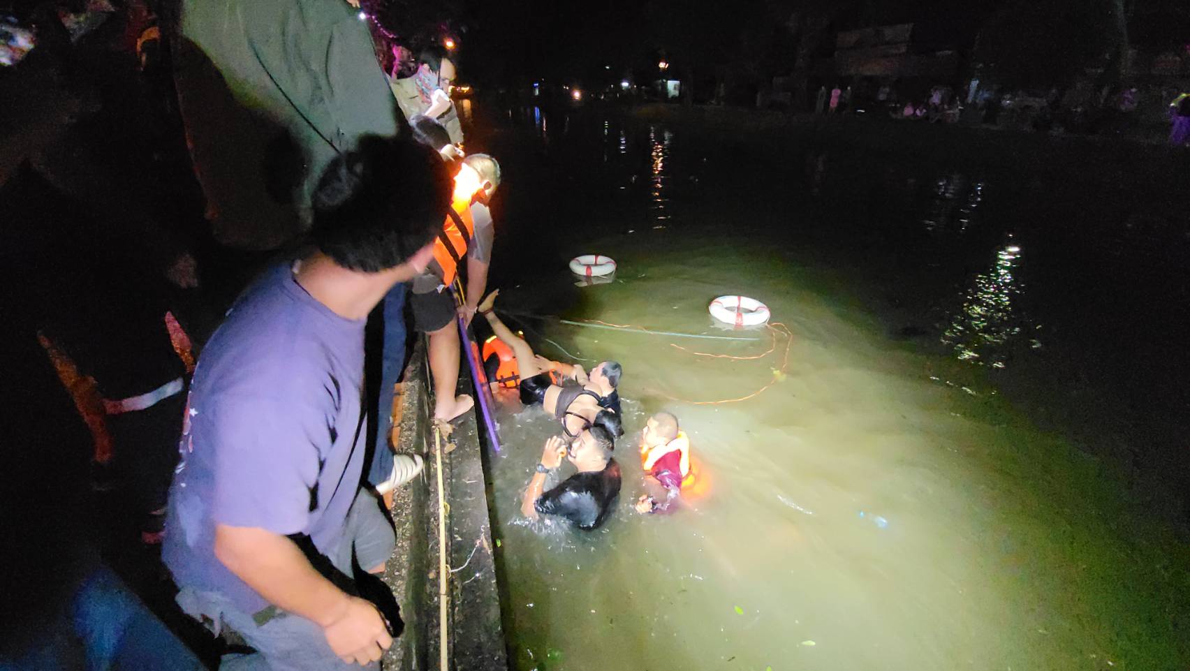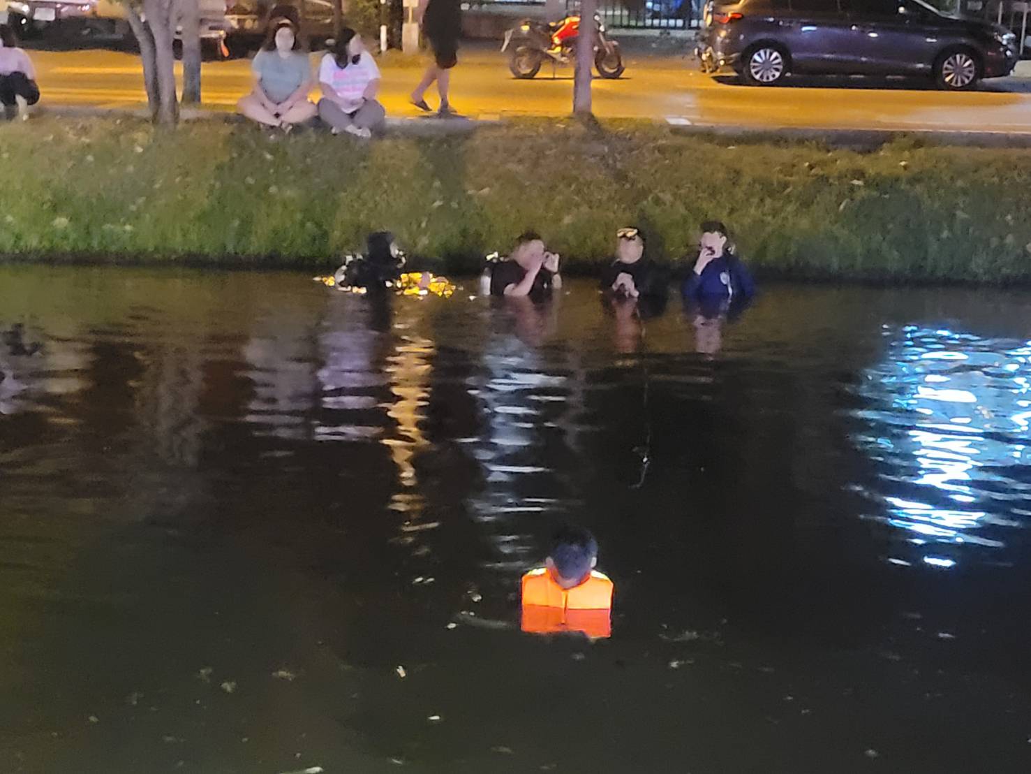 จากนั้นทางเจ้าหน้าที่ทีมประดาน้ำจึงได้ช่วยกันลงค้นหา จนพบร่างของผู้ประสบภัย เป็นหญิง 1 รายอายุประมาณ 40 ปี หมดสติติดอยู่ภายในซากรถใต้น้ำ ทางเจ้าหน้าที่จึงได้ช่วยกันนำร่างขึ้นจากน้ำก่อนทำการปั๊มหัวใจ เพื่อทำการช่วยชีวิตและได้นำส่งโรงพยาบาลอย่างเร่งด่วน