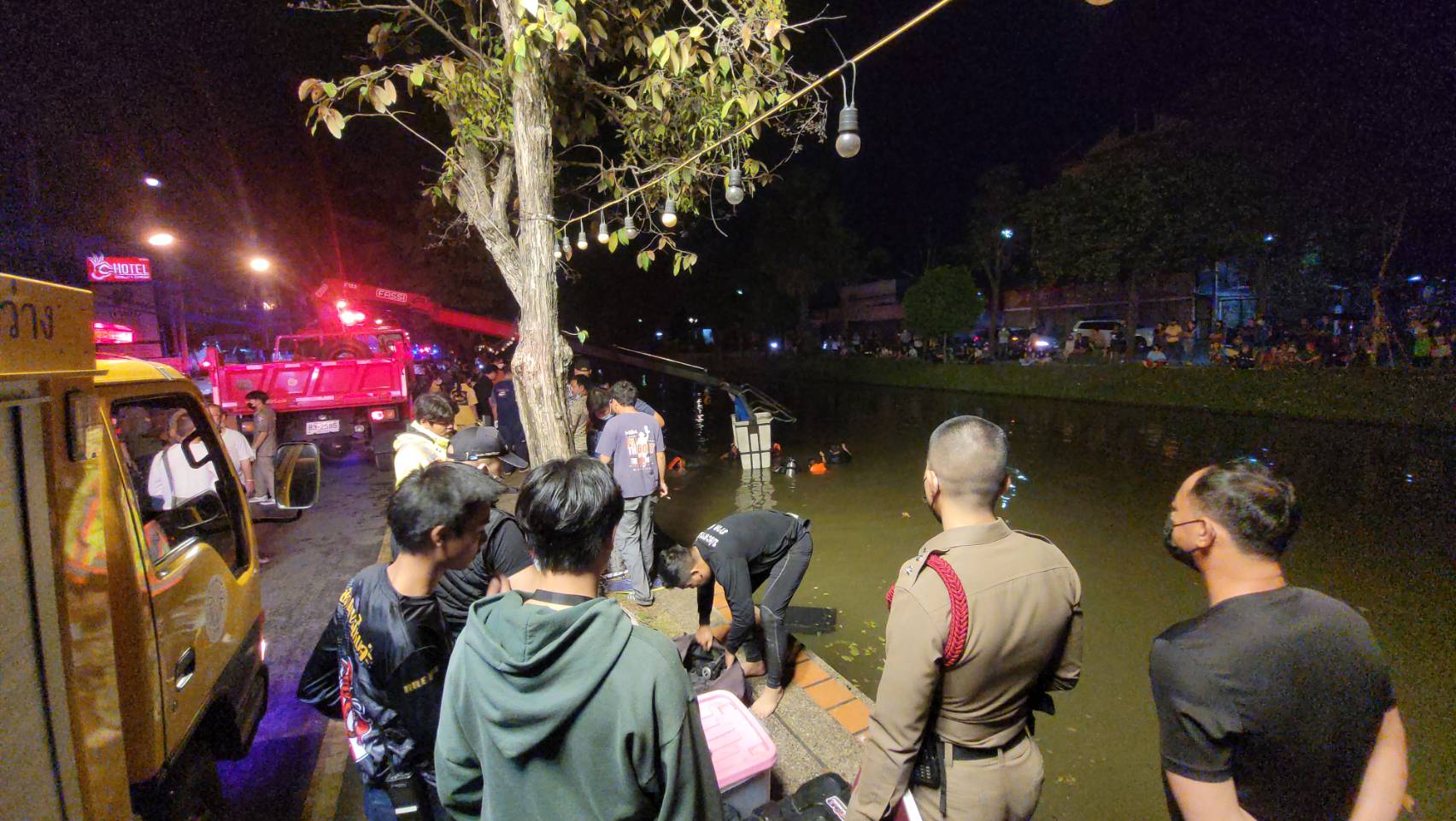 ช่วงดึกที่ผ่านมา ทางเจ้าหน้าที่กู้ภัย ได้รับแจ้งรายงานจาก ศูนย์เวียงพิงค์ว่า เกิดอุบัติเหตุรถยนต์เสียหลักตกลงไปในคูเมืองเชียงใหม่ บริเวณฝั่งใกล้กับสยามทีวี ถนนช่างหล่อ ตำบลหายยา อำเภอเมืองเชียงใหม่ หลังได้รับรายงานจึงได้ประสานเจ้าหน้าที่กู้ภัย เดินทางเข้าให้การช่วยเหลือโดยด่วน