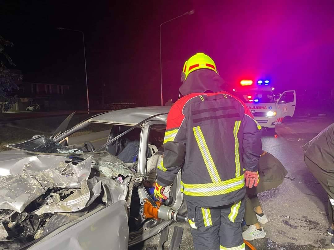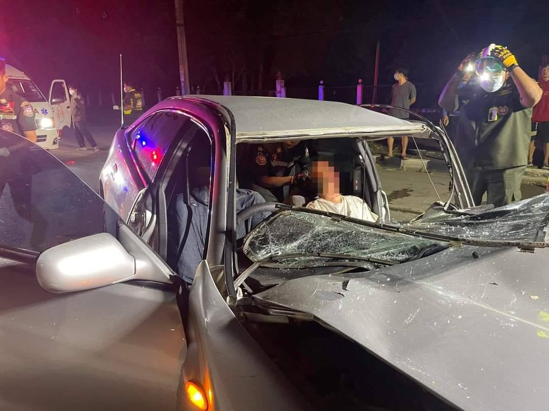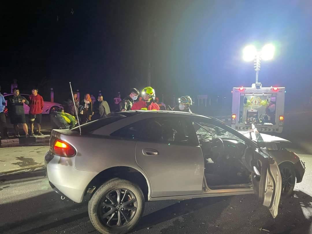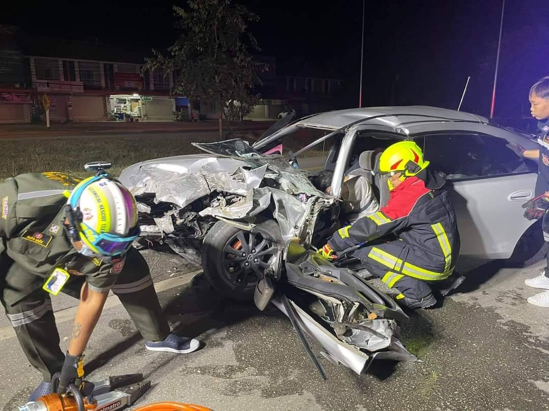 เก๋งชนท้ายรถไม่ทราบชนิดพังยับ หนุ่มเจ็บสาหัส 3 ราย ติดในรถ กู้ภัยเร่งช่วยชีวิต