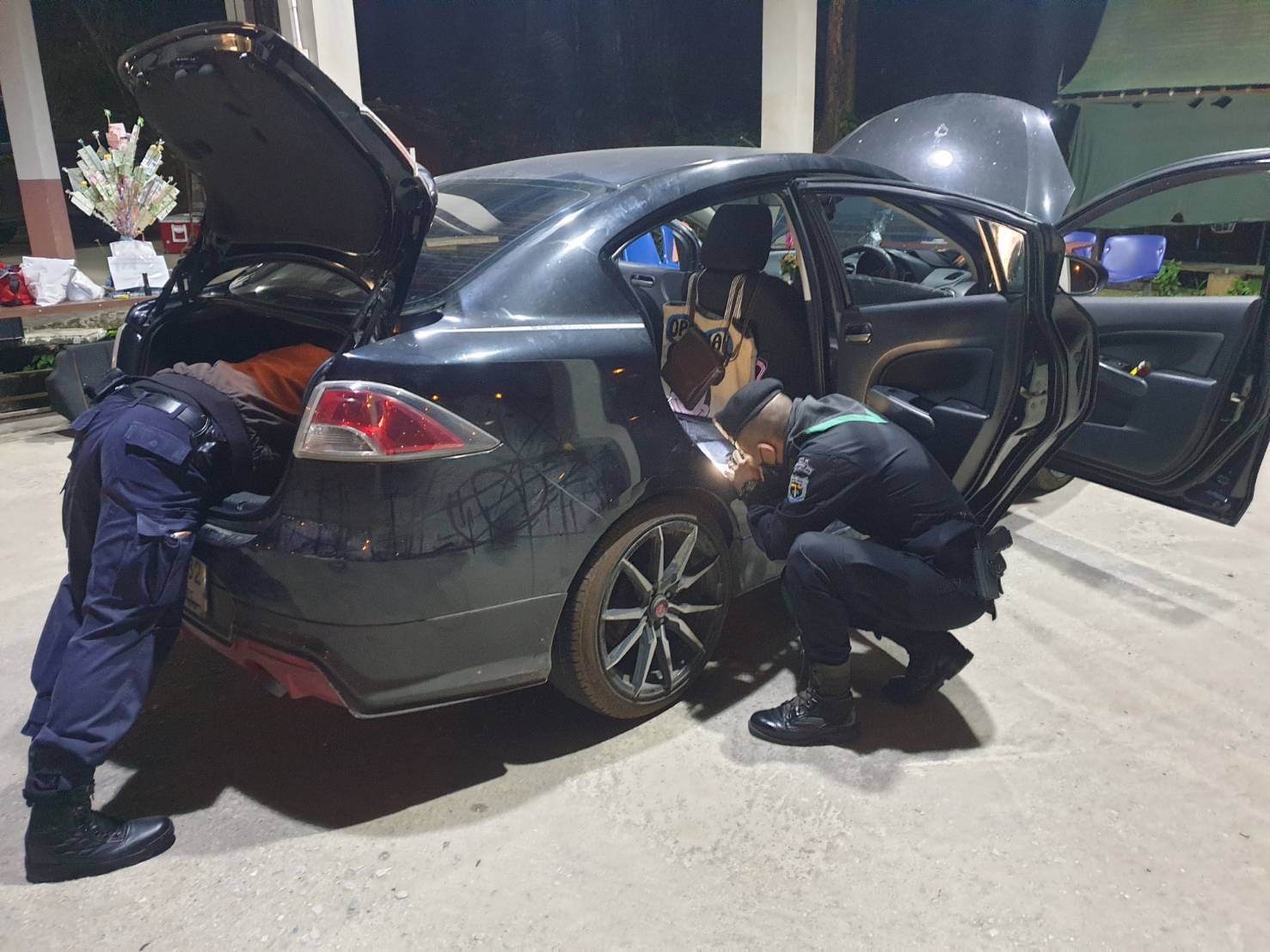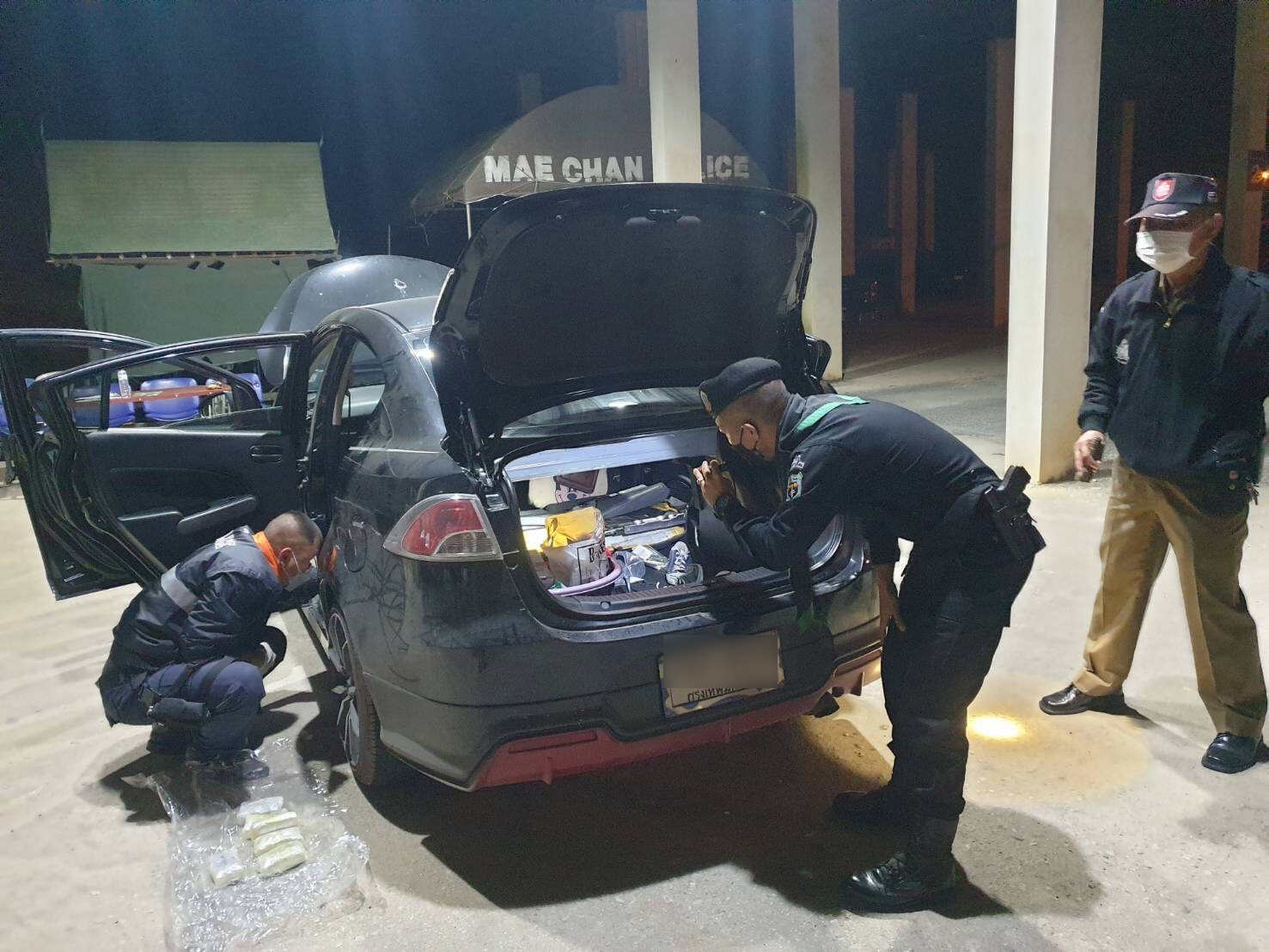 โดยได้ตรวจพบรถยนต์ต้องสงสัย ยี่ห้อ มาสด้า สีดำ หมายเลขทะเบียน กทม. จึงได้ส่งสัญญาณให้หยุดเพื่อขอทำการตรวจค้น เจ้าหน้าที่ได้สังเกตพฤติกรรม คนที่นั่งมาในรถลักษณะเหมือนผู้เสพยาบ้า จึงได้นำตัวไปตรวจปัสสาวะ ผลการตรวจมีสารเสพติดในปัสสาวะ จึงไปตรวจค้นรถอย่างละเอียด ตรงเบาะนั่งด้านหลัง เห็นมีไขควงและขอดูในโทรศัพท์พบภาพถ่าย เป็นรูปเบาะด้านหลังรถ เลยตรวจค้นโดยละเอียด