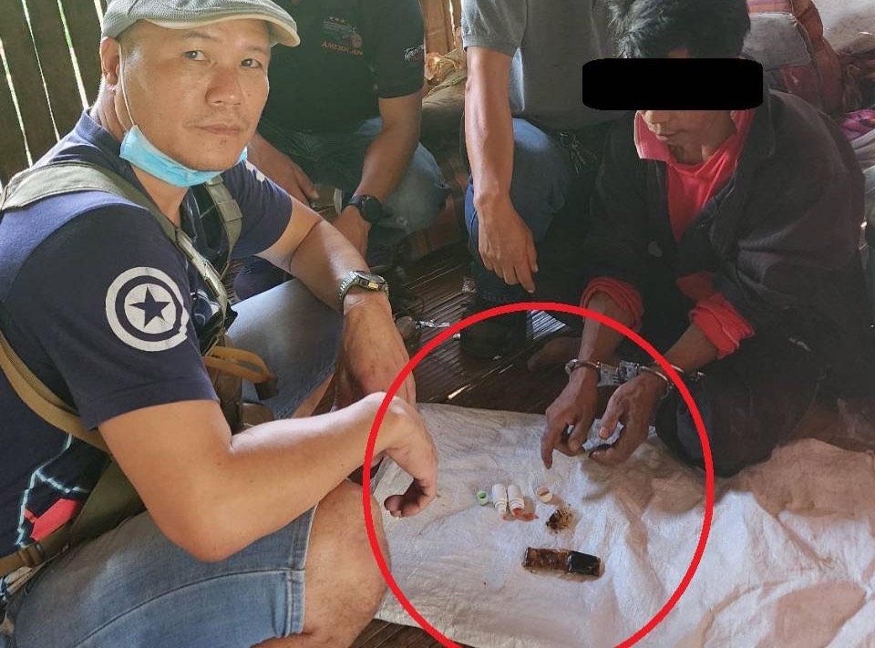 ก่อนจับกุมเจ้าหน้าที่ไดรับแจ้งว่า มีการมั่วสุมเสพและขายยาบ้าบริเวณกระท่อมท้ายหมู่บ้าน แม่อ้อใน ม.8 ต.แม่นะ ฯ ชุดจับกุมจึงรายงานให้ผู้บังคับบัญชาทราบ และออกตรวจสอบทันที เมื่อชุดจับกุมไปถึงที่เกิดเหตุพบ นายซายหลู่ฯ นั่งในกระท่อม เมื่อนายซายหลู่ฯ พบชุดจับกุมได้แสดงท่าทางมีพิรุธ เชื่อว่ามีสิ่งของผิดกฎหมายซุกซ่อนอยู่ จึงแสดงตัวเป็นเจ้าหน้าที่ตำรวจทำการตรวจค้น พบยาบ้าจำนวน 86 เม็ด และฝิ่นดิบ น้ำหนัก 12 กรัม ซุกซ่อนข้างๆ ที่นายซายหลู่ฯ นั่งอยู่ และรับว่าของกลางดังกล่าวเป็นของตนเองจริง และยังรับอีกว่าเสพยาบ้า และฝิ่น มาก่อนหน้านี้ เจ้าหน้าที่จึงนำตัวไปตรวจปัสสาวะหาสารเสพติดที่ รพ.เชียงดาว พบสารเสพติด เมท,มอร์ฟีน ในปัสสาวะของนายซายหลู่ฯ