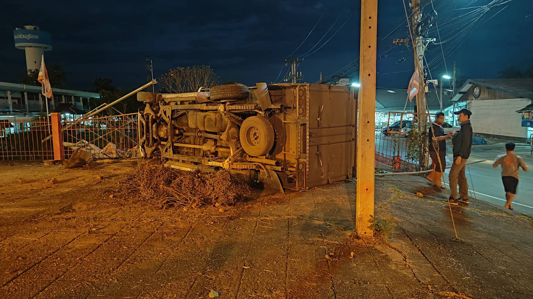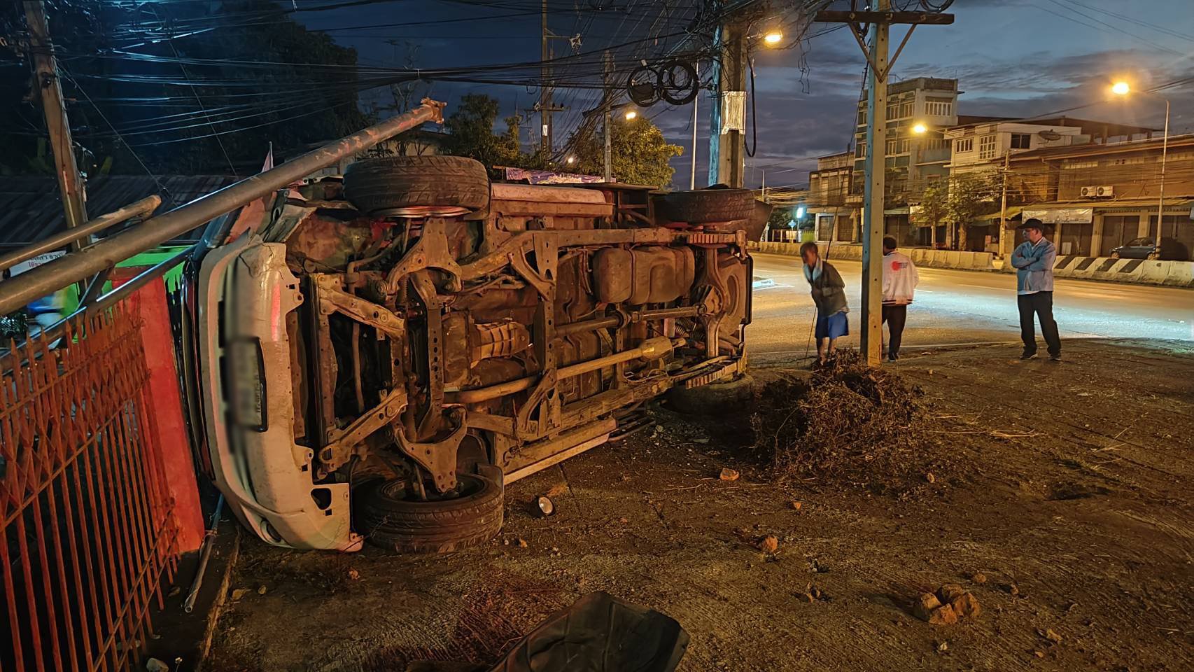 ศูนย์บัญชาการช่วยเหลือเหตุการณ์ อ.สูงเม่น ออกช่วยเหลือรถยนต์พลิกคว่ำ