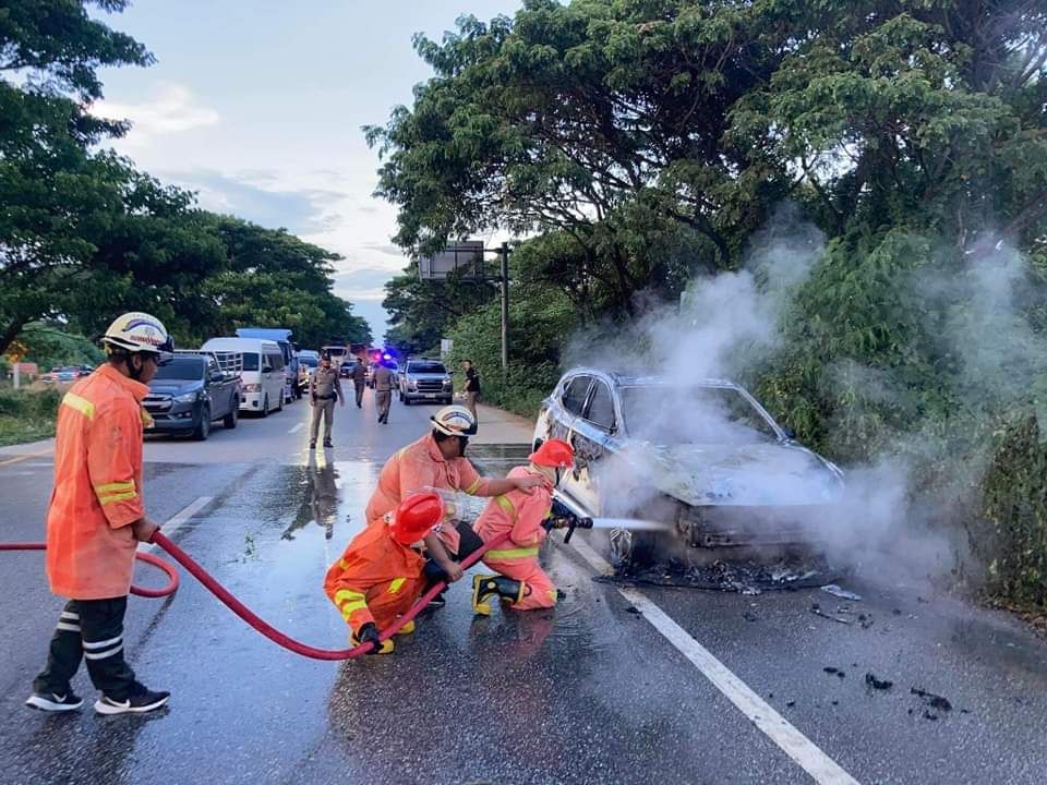 วันที่ 20 พ.ย.2565 เวลา 17.15 น. เจ้าหน้าที่ตำรวจสภ.สบปราบ จ.ลำปาง รับแจ้งว่าเกิดเหตุเพลิงไหม้รถยนต์ ใกล้กับด่านตรวจ สภ.สบปราบ ถ.ลำปาง-ตาก ต.แม่กัวะ อ.สบปราบ จ.ลำปาง จึงประสานเจ้าหน้าที่ดับเพลิงเทศบาลและ อบต.ใกล้เคียง พร้อมสมาคมกู้ภัยลำปางจุดสบปราบ เข้าระงับเหตุ