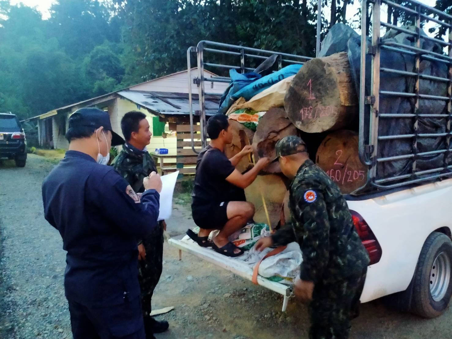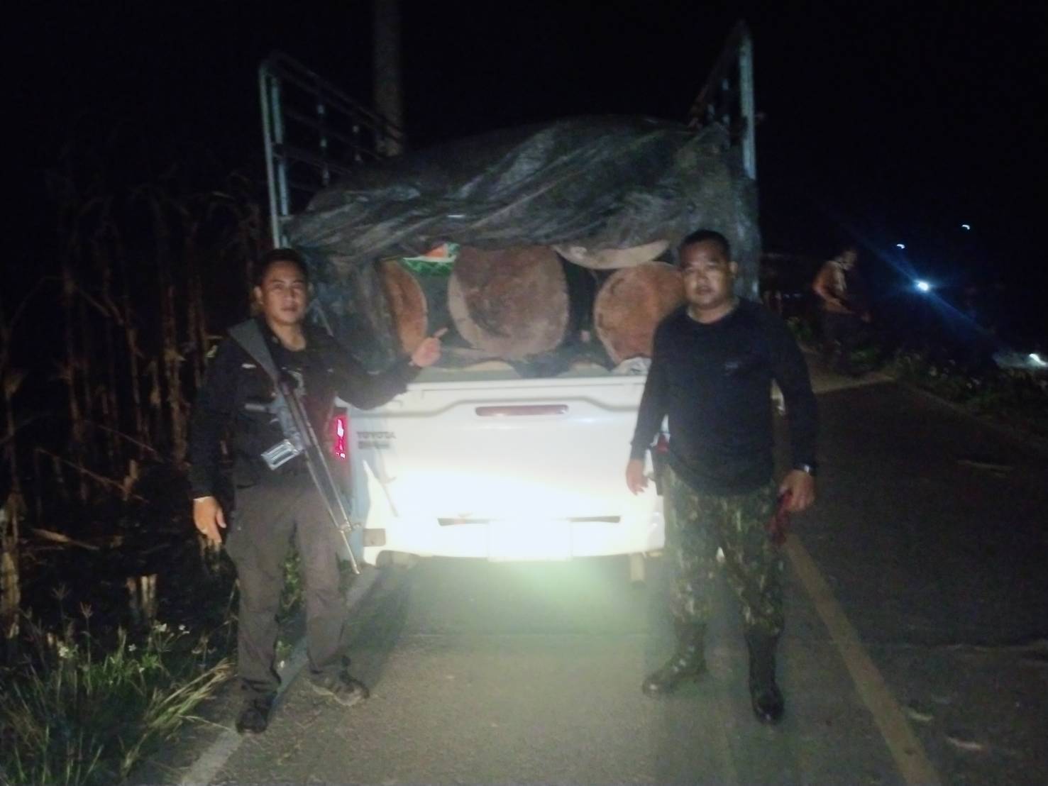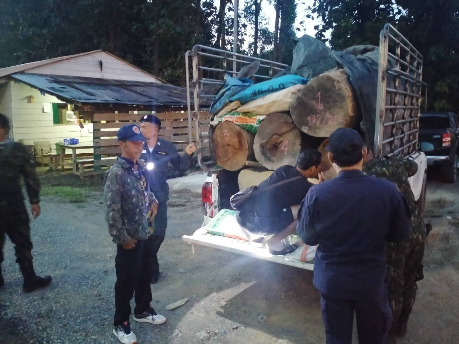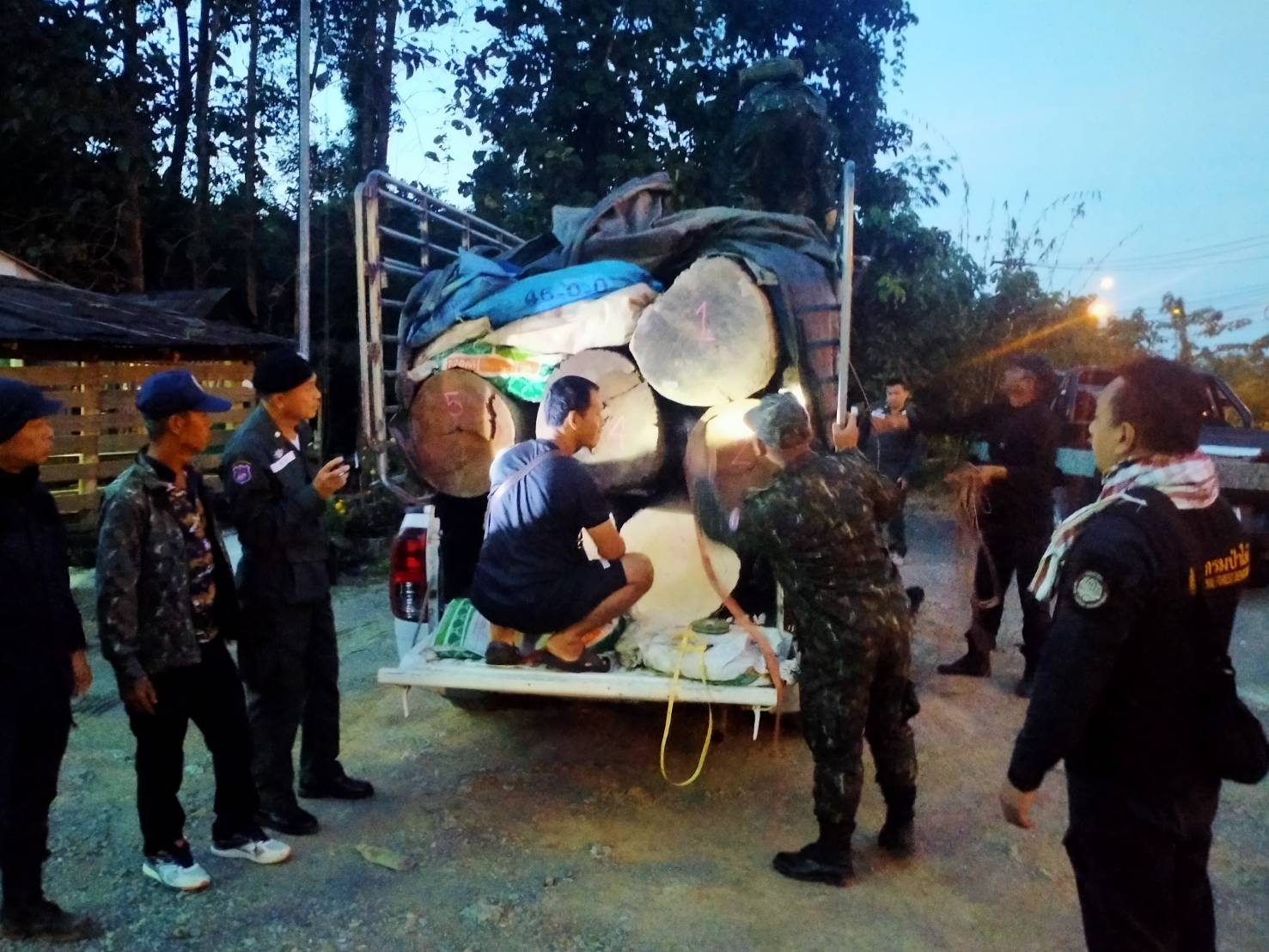 ป่าไม้แพร่ ร่วม ตำรวจ สภ.ไผ่โทน และฝ่ายปกครอง จ.แพร่จับขบวนไม้เถื่อนส่งขายต่างชาติ ส่วนคนขับหนีไปกับความมืด