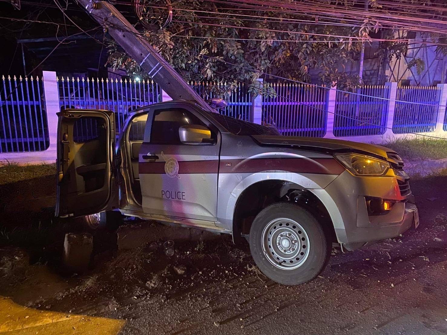 รถตำรวจชนเสาไฟฟ้าริมทาง บริเวถนนสายถนนโชตนา เชียงใหม่-ฝาง (ขาออกเมือง) เจ้าหน้าที่บาดเจ็บ 1 ราย ทีมกู้ภัยรุดช่วยเหลือนำตัวส่ง รพ.