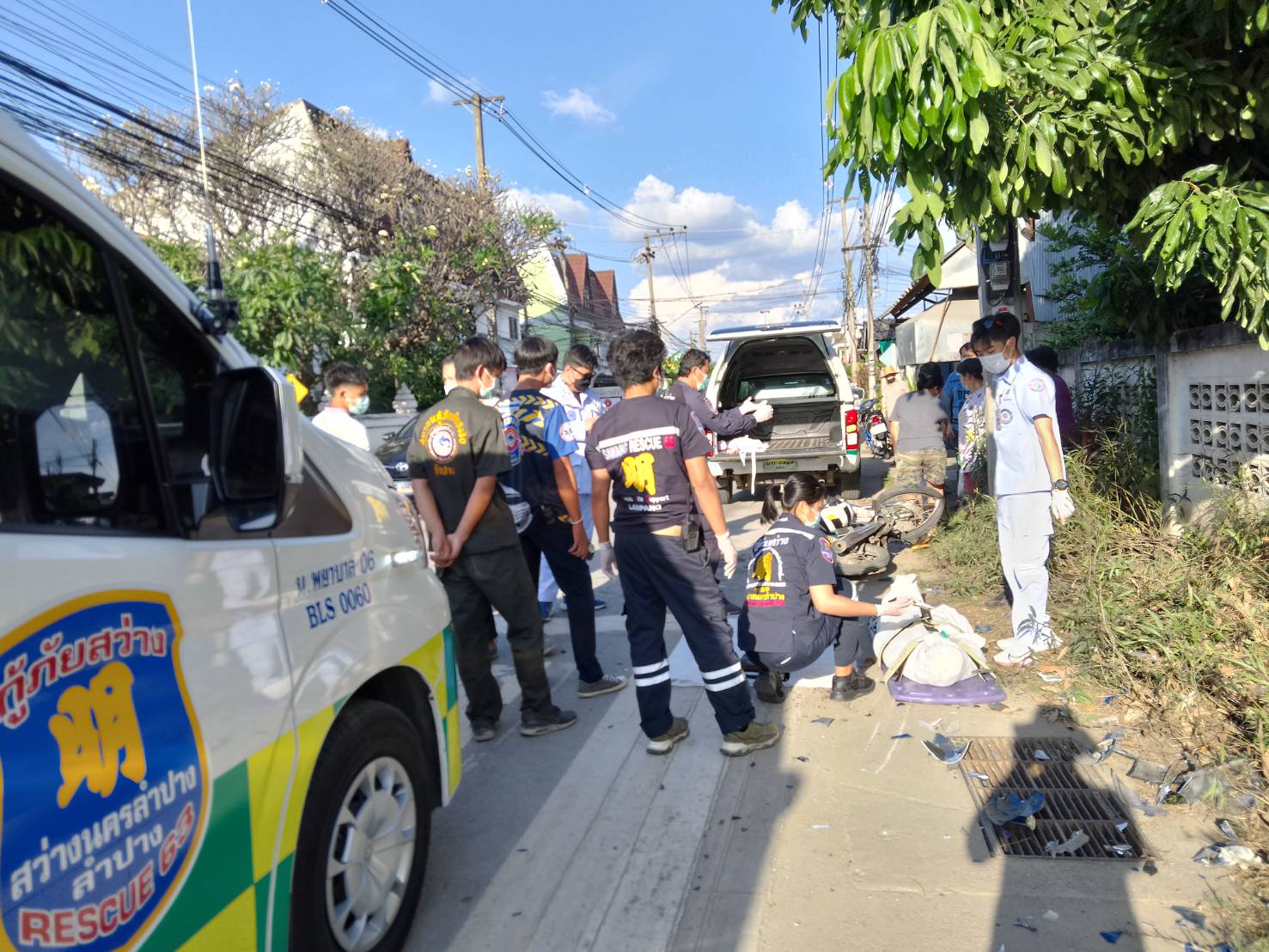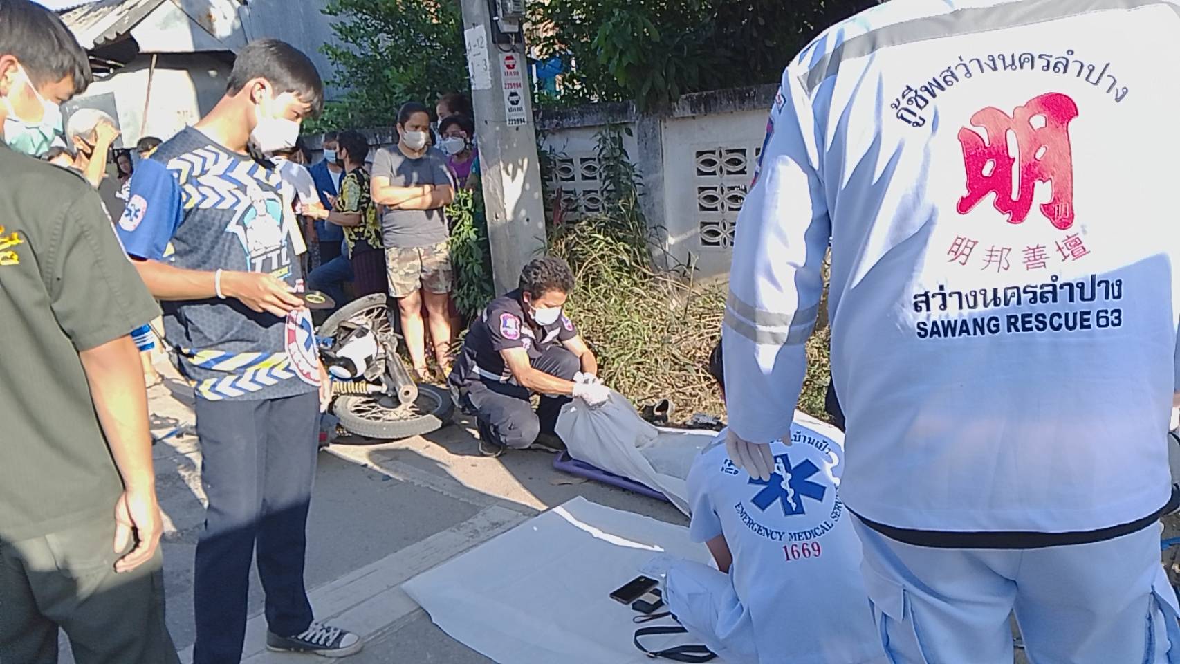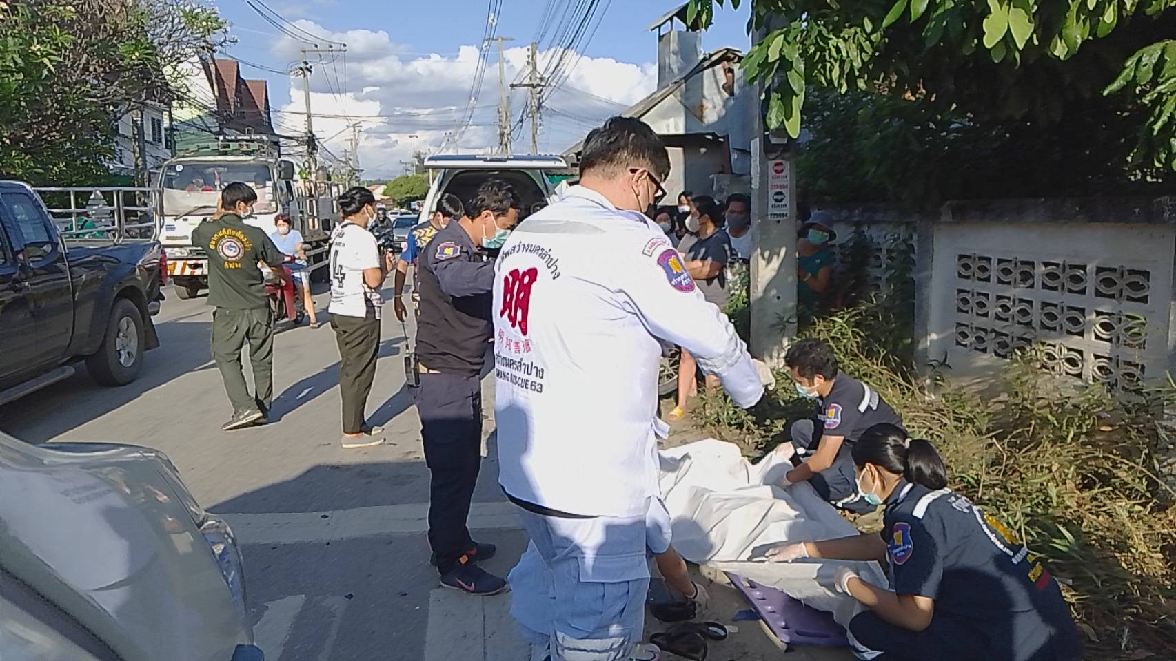 ในที่เกิดเหตุพบผู้เสียชีวิต 1 ราย เป็นหญิงอยู่ในสภาพนอนหงาย ขาข้างขวาหักพับขึ้นมาจนถึงสะโพก มีเลือดออกที่ศีรษะ ปาก และจมูก ใกล้กันพบรถจักรยานยนต์ ยี่ห้อฮอนด้าเวฟ สีฟ้า หมายเลขทะเบียน ขขฉ 227 ลำปาง ล้มอยู่ข้างเสาไฟฟ้า ไฟหน้ารถแตก ตะกร้าหน้ารถบุบเสียหายทั้งหมด จากการตรวจสอบภายในกระเป๋าสะพายของผู้เสียชีวิต พบสมุดออมทรัพย์ของชุมชนพระแก้ว-หัวข่วง ระบุชื่อ นางปริมใจ (สงวนนามสกุล) วัย 70 กว่าปี ซึ่งมีตำแหน่งเป็นประธานชุมชนแห่งนี้ด้วย และยังพบสร้อยพระ โทรศัพท์และเงินสดจำนวนหนึ่ง เจ้าหน้าที่จึงได้เก็บส่งคืนให้กับญาติผู้เสียชีวิต