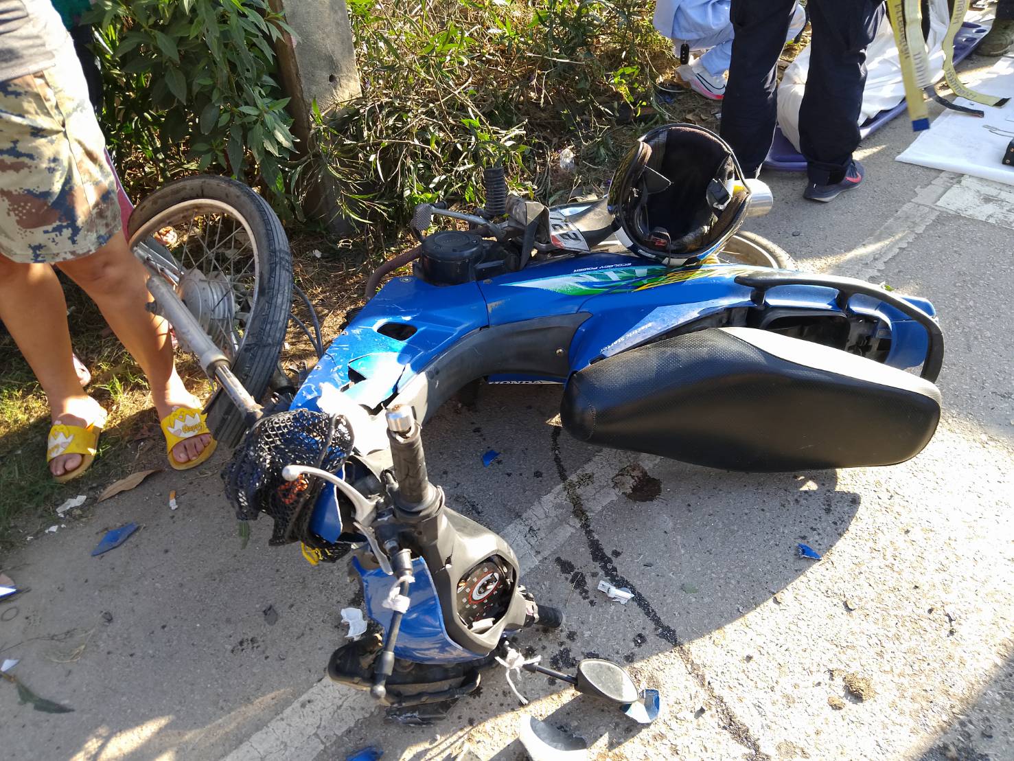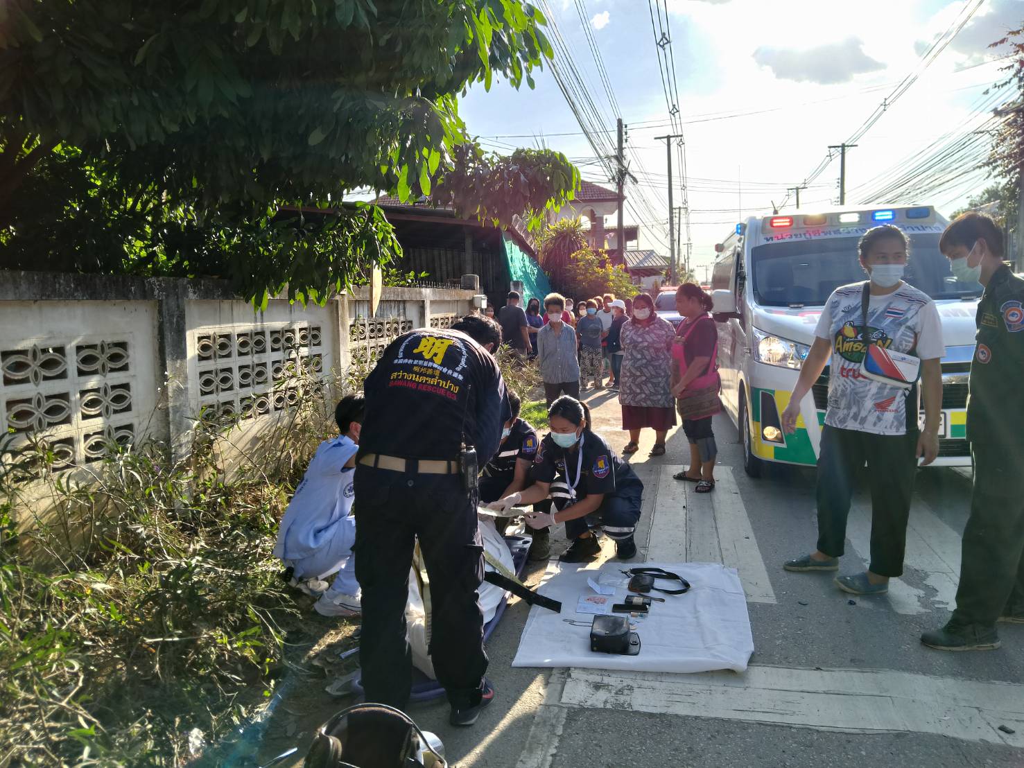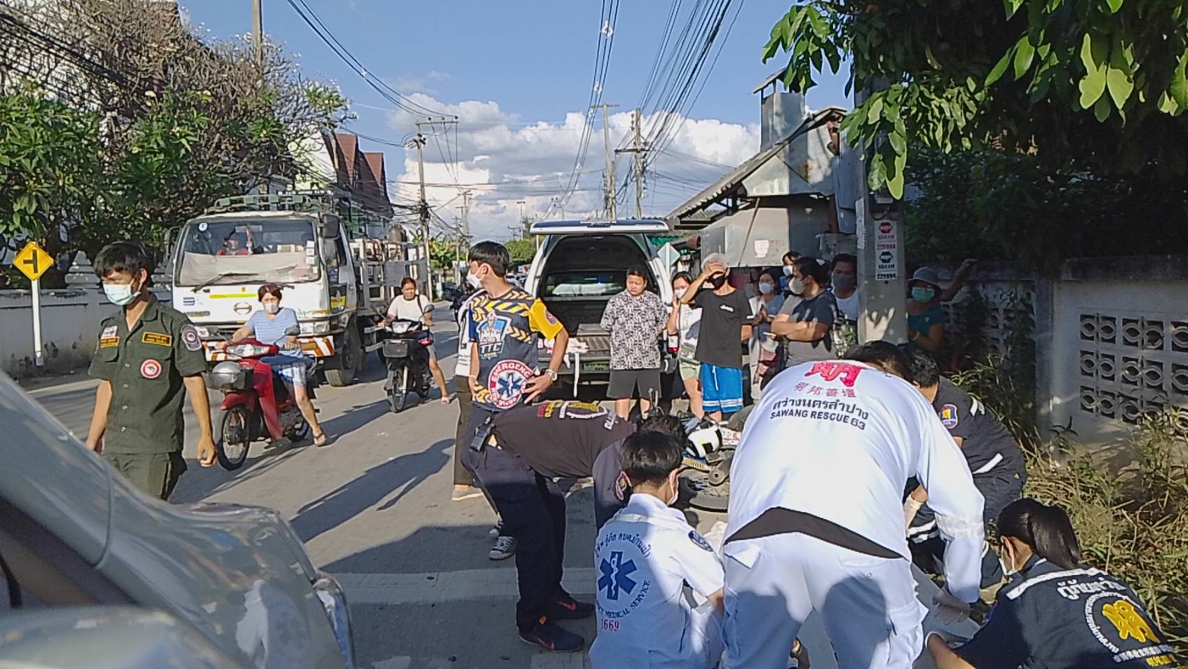 ในที่เกิดเหตุพบผู้เสียชีวิต 1 ราย เป็นหญิงอยู่ในสภาพนอนหงาย ขาข้างขวาหักพับขึ้นมาจนถึงสะโพก มีเลือดออกที่ศีรษะ ปาก และจมูก ใกล้กันพบรถจักรยานยนต์ ยี่ห้อฮอนด้าเวฟ สีฟ้า หมายเลขทะเบียน ขขฉ 227 ลำปาง ล้มอยู่ข้างเสาไฟฟ้า ไฟหน้ารถแตก ตะกร้าหน้ารถบุบเสียหายทั้งหมด จากการตรวจสอบภายในกระเป๋าสะพายของผู้เสียชีวิต พบสมุดออมทรัพย์ของชุมชนพระแก้ว-หัวข่วง ระบุชื่อ นางปริมใจ (สงวนนามสกุล) วัย 70 กว่าปี ซึ่งมีตำแหน่งเป็นประธานชุมชนแห่งนี้ด้วย และยังพบสร้อยพระ โทรศัพท์และเงินสดจำนวนหนึ่ง เจ้าหน้าที่จึงได้เก็บส่งคืนให้กับญาติผู้เสียชีวิต