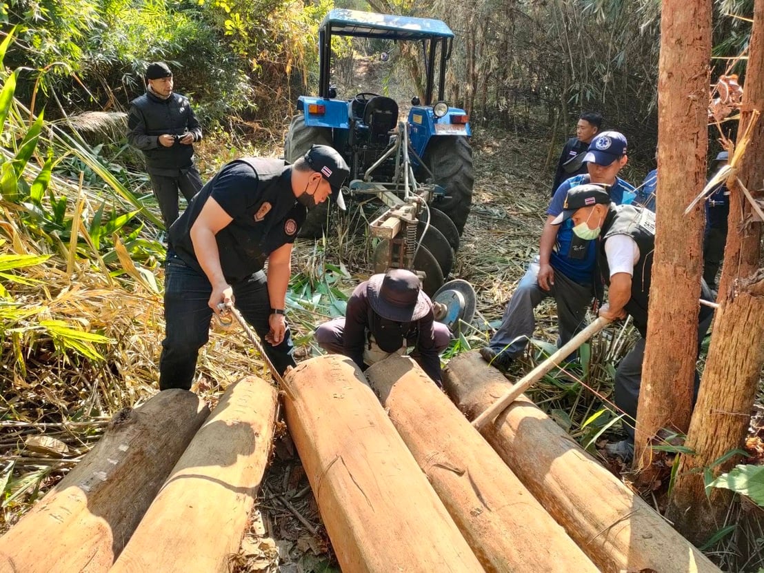 จากการออกบาดตระเวนลงพื้นที่ สามารถตรวจยึด ไม้รัง ไม้พลวง ไม้ประดู่ ที่ถูกลักลอบตัดไม้ ในพื้นที่ บ้านช้าง ม.1 ต.บ้านช้าง อ.แม่แตง จ.เชียงใหม่ จำนวน 22 ท่อน ปริมาตร 4.824 ลูกบาศ์กเมตร คิดเป็นค่าเสียหายของรัฐ 130,860 บาท