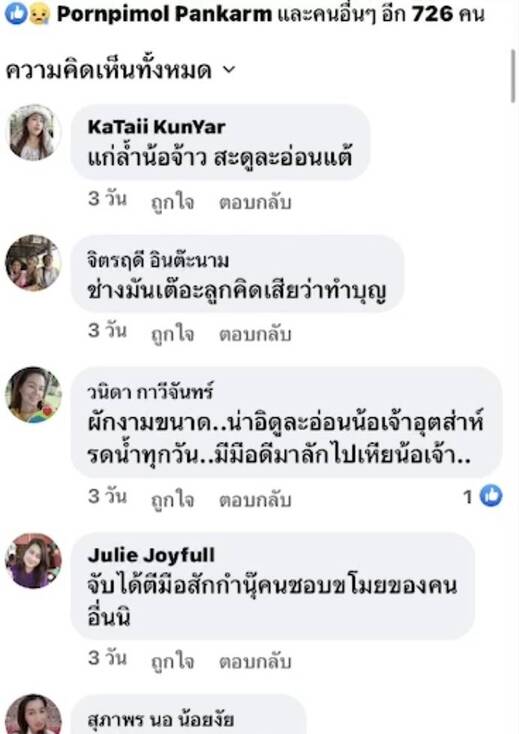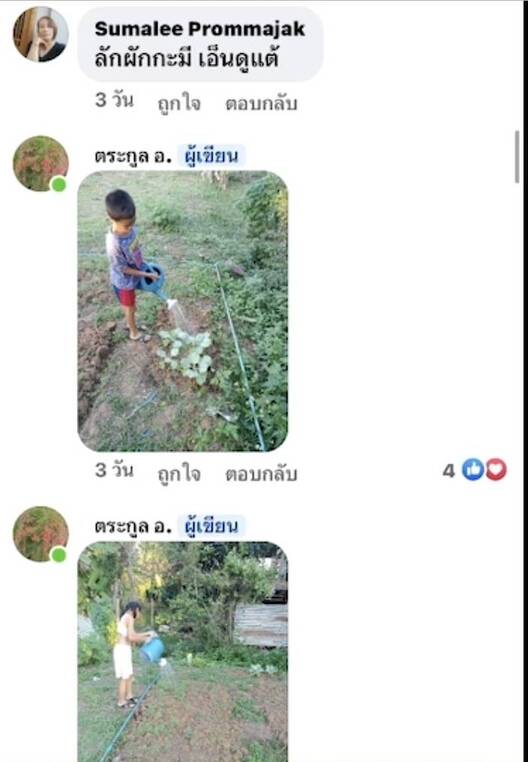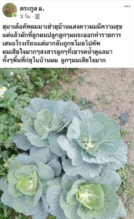 จึงไปรดน้ำซ้ำแต่เมื่อสังเกตดูพบว่าหัวกะหล่ำถูกตัดไปจนหมด รวมทั้งผักบุ้งจีนมีการแอบตัดเฉพาะตรงกลางแปลงไป ตอนแรกก็ไม่กล้าจะบอกลูก ทำใจอยู่นาน ถึงบอกลูก พอลูกรู้ก็ซึมและร้องไห้ บ่นที่คนมาขโมยผักที่กำลังจะนำไปส่งผลงานครู ตนสงสารลูกจึงโพสต์ระบายในสื่อโซเชี่ยล เพราะสงสัยแรงงานต่างชาติที่มาตั้งแคมป์ เพื่อก่อสร้างบ้านพักอาศัยที่อยู่ใกล้ๆ และมองว่าพักก็ปลูกอยู่ในเขตบ้านมีรั้วรอบขอบชิด แล้วปลอดภันในชีวิตและทรัพย์สินจะเหลืออะไร แม้แต่หัวกะหล่ำยังถูกขโมย