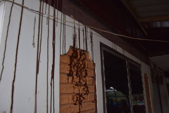 เมื่อวันที่ 22 ก.พ.66 ผู้สื่อข่าวลงพื้นที่ไปยังบ้านแฮะ ม.5 ต.แม่ลาว อ.เชียงคำ จ.พะเยา หลังมีชาวบ้านร้องเรียนผ่านสื่อเข้ามาว่าพบแก๊งหลอกทาสีบ้านในพื้นที่ซึ่งสร้างความเสียหายไปแล้วไม่ต่ำกว่า 10 หลังคา ทั้งนี้แก๊งดังกล่าวเคยสร้างความเสียหายในพื้นที่ของ ต.ออย อ.ปง จ.พะเยา เมื่อช่วงเดือนก่อนที่ผ่านมา โดยชาวบ้านแฮะต่างพูดเป็นเสียงเดียวกันว่าสีที่ใช้ทานั้นไม่ได้คุณภาพซ้ำร้ายน้ำสียังย้อยเป็นทางเหมือนบ้านผีสิง