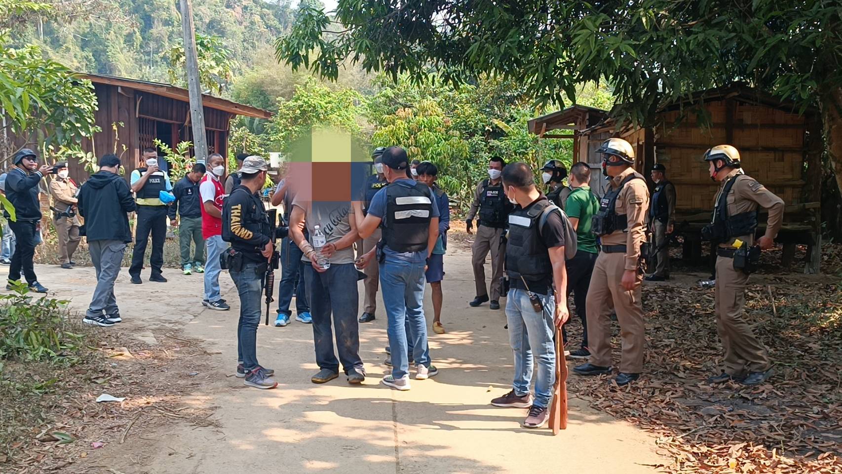 หลังจากได้แจ้งจากผู้ใหญ่บ้านว่า มีเสียงปืนจากบ้านหลังดังกล่าว และมีเสียงเอะอะโวยวายเพ้อว่าตนเองไม่ได้รับความยุติธรรมและจับภรรยาขังไว้ในบ้าน โดยภายในบ้านมีปืน และคนก่อเหตุมีพฤติกรรมยุ่งเกี่ยวกับยาเสพติด โดยที่เจ้าหน้าที่ตำรวจชุดจับกุมได้เฝ้าสังเกตการณ์และประเมินสถานการณ์ในการเข้าทำการตรวจสอบที่หน้าบ้านของบุคคลผู้ก่อเหตุ จนแน่ชัดว่าบุคคลผู้ก่อเหตุอยู่ภายในบ้าน เจ้าหน้าที่ปิดล้อมและเจรจาเกือบ 3 ชั่วโมง นายเรวัตร จึงยอมวางอาวุธและมอบตัว จากการตรวจค้นภายในบ้าน