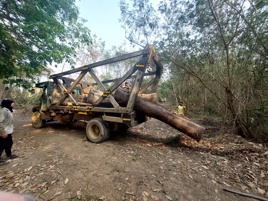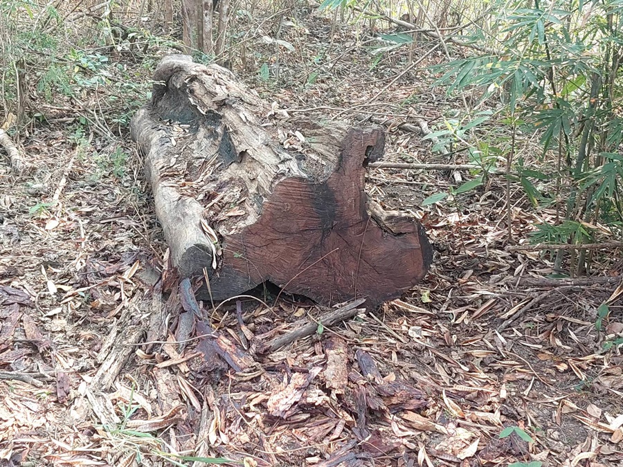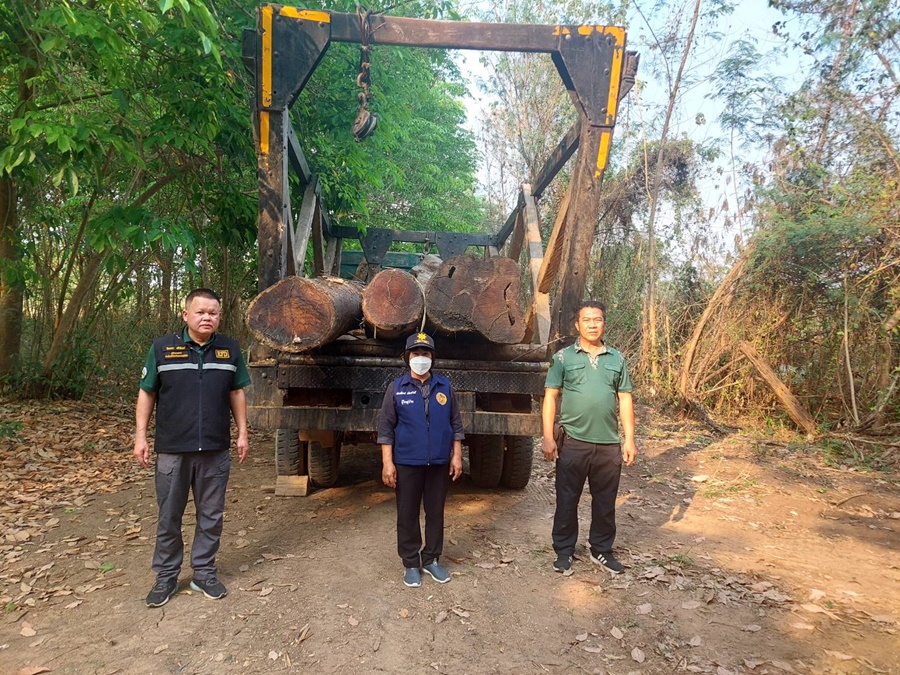 เอาอีกแล้ว เจ้าหน้าที่ออกลาดตะเวณตรวจไฟป่า เจอไม้ประดู่ใหญ่ 5 ท่อน ซุกซ่อนในสวนยางพารา