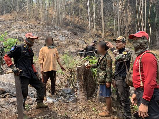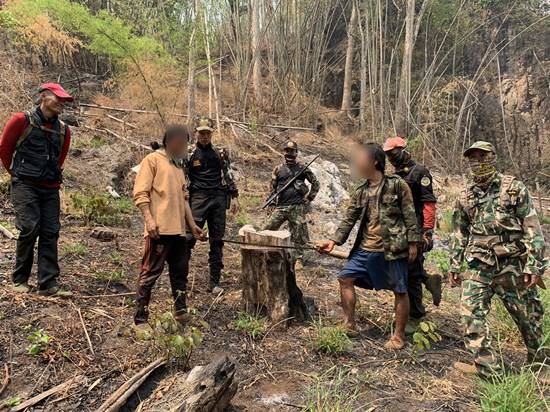 เขตรักษาพันธุ์สัตว์ป่าลุ่มน้ำปาย จับกุมคนต่างด้าว 2 ราย ขณะเข้าไปลักลอบตัดไม้และจุดไฟเผาป่าในพื้นที่อำเภอปางมะผ้า