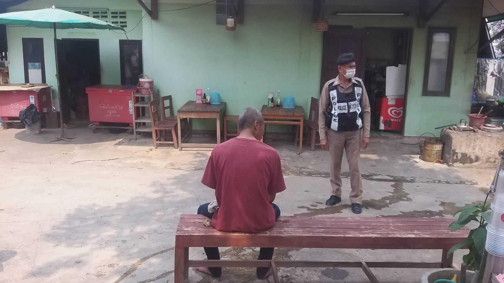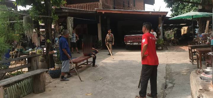 สอบสวนฝ่ายปกครองในพื้นที่ เบื่องต้นนายโอ๋ มีอาการป่วยทางจิตจากปัญหาเสพยาเสพติด และคาดว่า วันนี้อาจจะเสพยาเกินขนาด จึงเกิดอาการคุ้มคลั่ง เบื้องต้นจากการตรวจสอบ ความเสียหายพบว่านายโอ๋ ได้ใช้อาวุธทุบมิเตอร์ไฟฟ้า ที่หน้าบ้านหลังหนึ่งในหมู่บ้านแตกเสียหาย จึงได้ประสานให้เจ้าของบ้านไปแจ้งความดำเนินคดี เนื่องจากหม้อไฟเสียหาย หากมีฝนตกลงมาจะลำบาก อาจจะเกิดไฟฟ้าช็อตได้