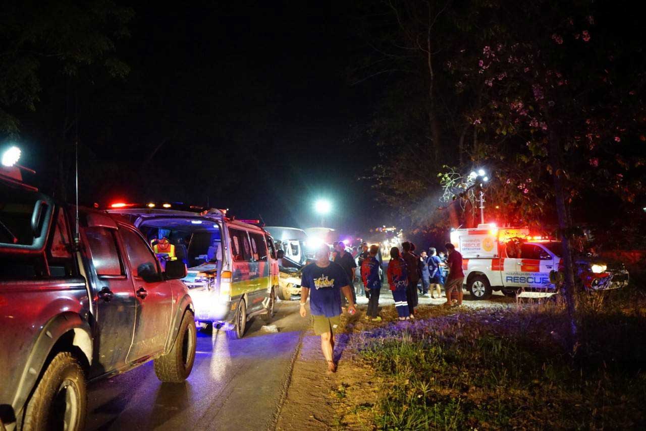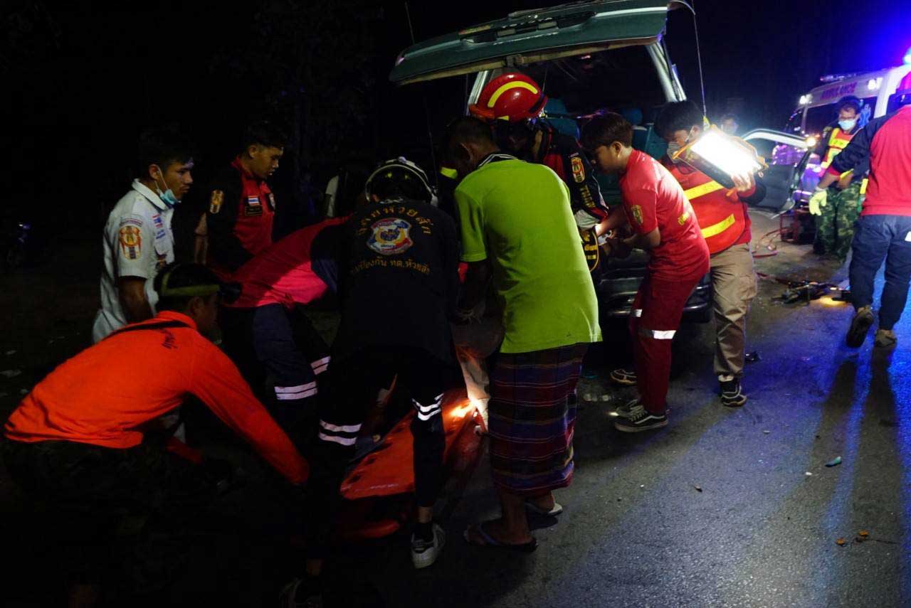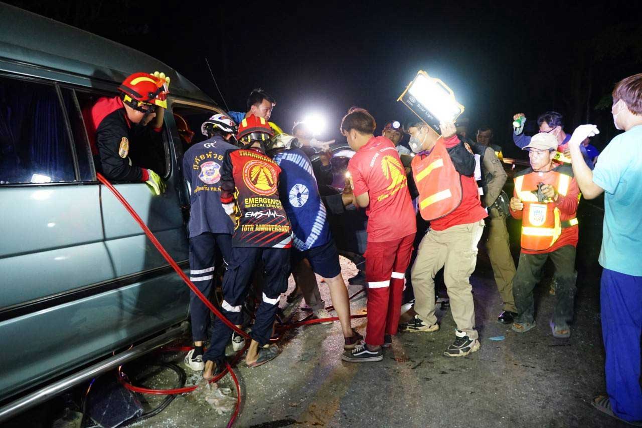 เหตุด่วน! กระบะหลุดโค้งพุ่งข้ามเลนชนกับรถตู้ เบื้องต้นตาย 2 เจ็บ 13 ราย