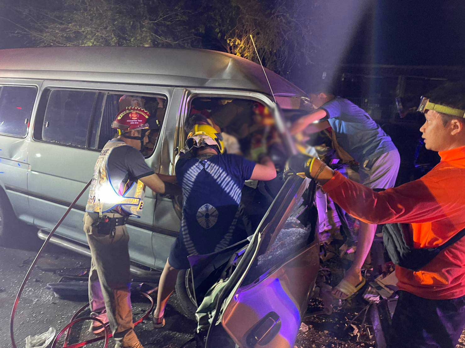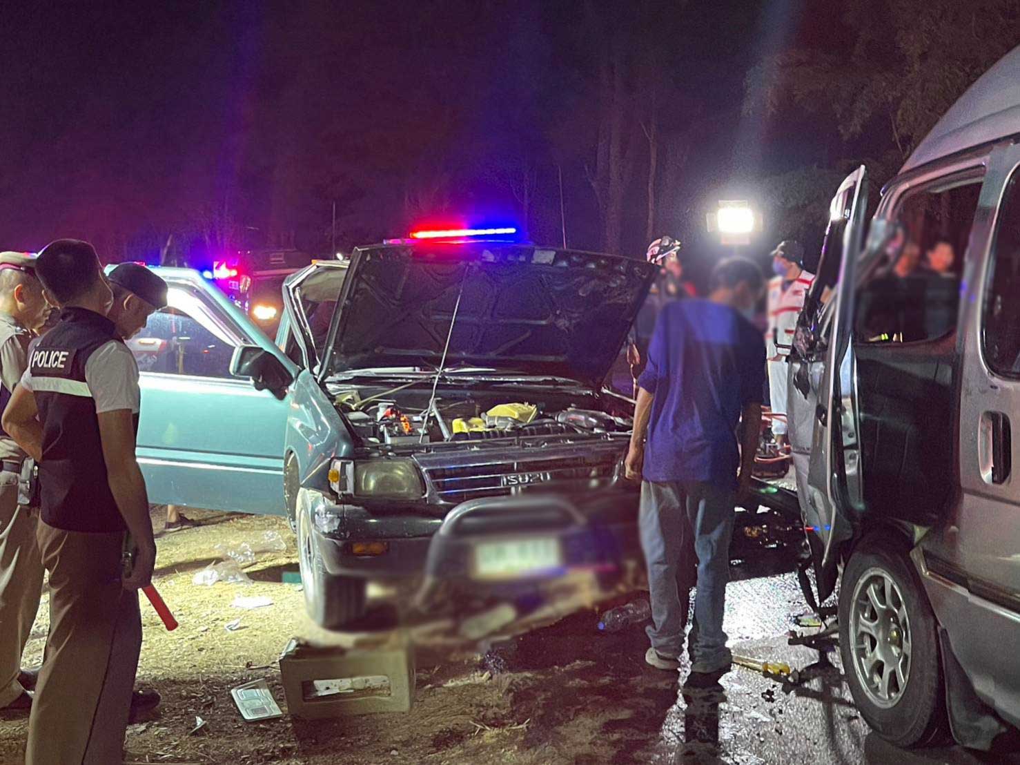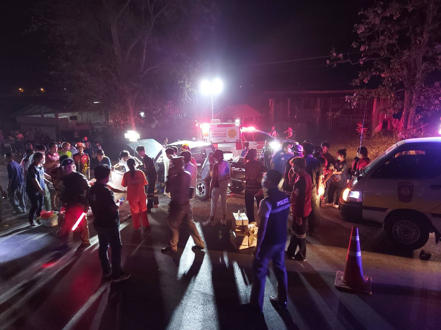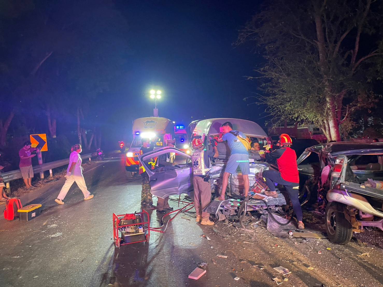 เหตุด่วน! กระบะหลุดโค้งพุ่งข้ามเลนชนกับรถตู้ เบื้องต้นตาย 2 เจ็บ 13 ราย