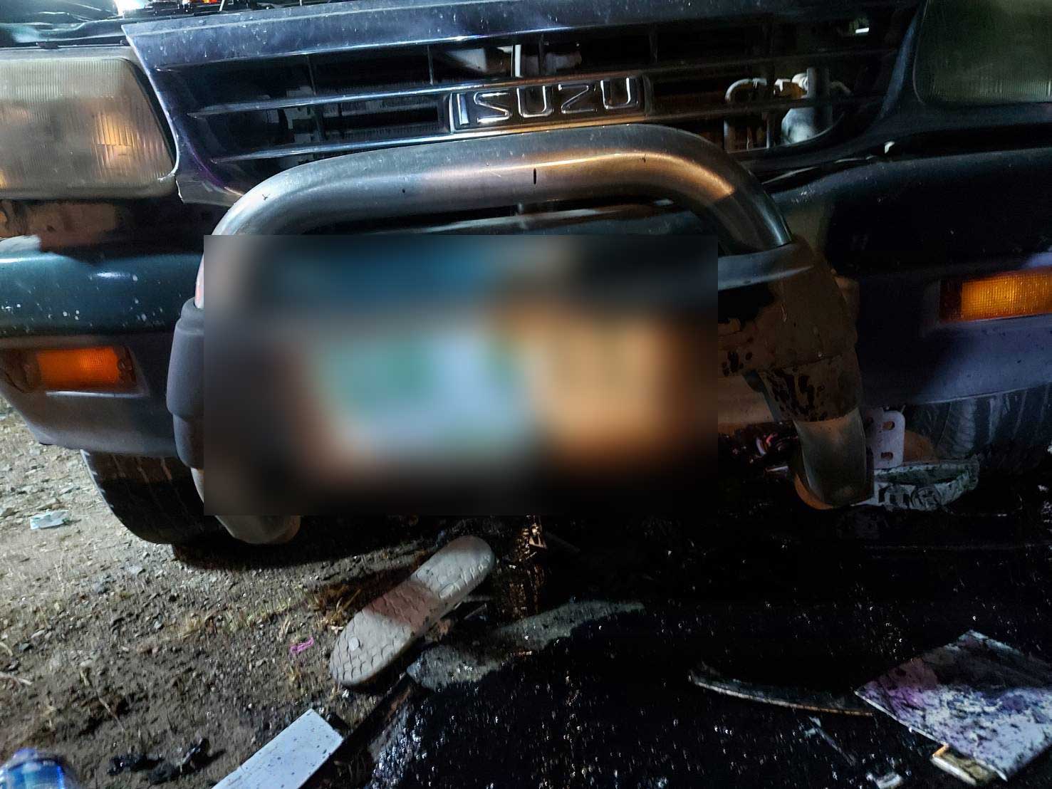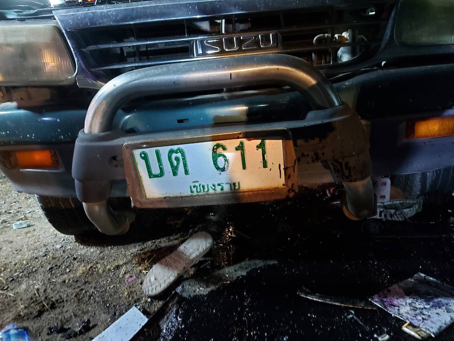 ที่เกิดเหตุอยู่บนถนนทางหลวงหมายเลข 1020 ช่วงเชียงราย-เทิง พบรถยนต์กระบะอีซูซุ สีเทาเขียว ทะเบียน 611 เชียงราย สภาพรถด้านหน้าฝั่งที่นั่งผู้โดยสารพังยับเยิน มีผู้เสียชีวิตในที่เกิดเหตุเป็นเด็กหญิงอายุ 14 ปี ทราบชื่อในภายหลังคือ ด.ญ.กานต์ (สงวนนามสกุล) ส่วนคนขับเพศชายอายุประมาณ 60 ปี (ยังไม่ทราบชื่อ) เป็นผู้ขับขี่และพ่อของเด็กหญิงผู้เสียชีวิต ได้รับบาดเจ็บสาหัส ล่าสุดทนพิษบาดแผลไม่ไหวไปเสียชีวิตที่ รพ. รวมผู้เสียชีวิต 2 ราย ส่วนรถตู้ยี่ห้อโตโยต้า คอมมิวเตอร์ สีบรอนซ์ ทะเบียน นข 6560 เชียงราย ถูกชนด้านหน้ารถพังยุบ ทำให้ผู้โดยสารที่อยู่ในรถตู้ได้บาดเจ็บ 12 ราย และมีผู้บาดเจ็บจากรถกระบะอีก 1 ราย รวมผู้บาดเจ็บ 13 ราย ถูกช่วยเหลือนำส่ง รพ.เชียงรายประชานุเคราะห์ รพ.เทิง และ รพ.ป่าแดด