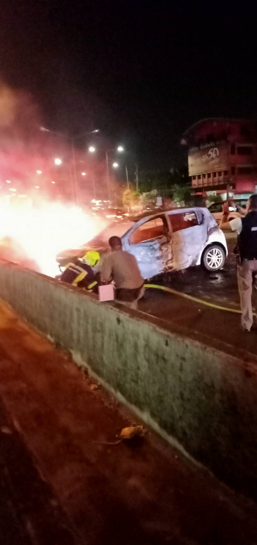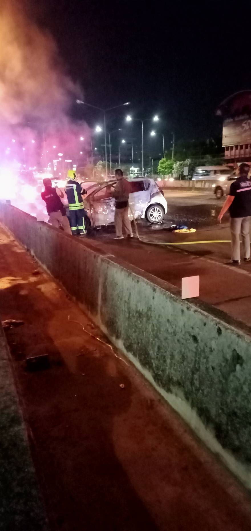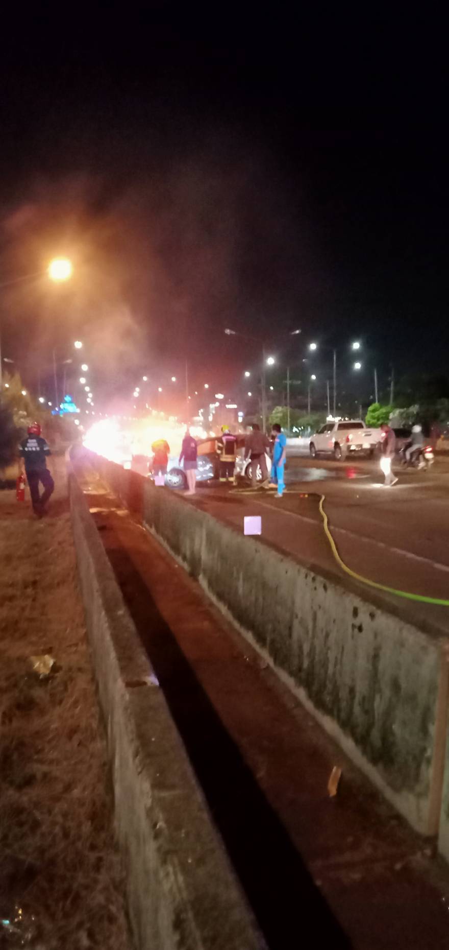 รถเก๋งไฟไหม้บริเวณแยกข่วงสิงห์ ทำรถติดเป็นทางยาว จนท.เร่งเคลียร์พื้นที่ ล่าสุดควบคุมสถานการณ์ได้แล้ว