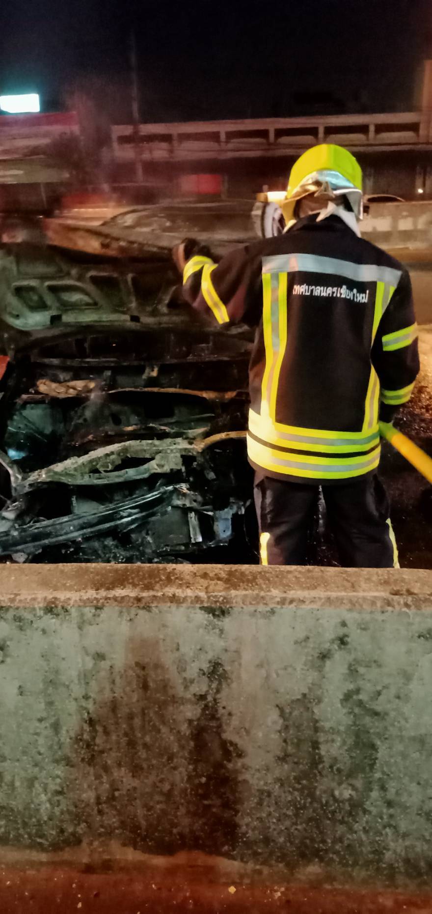 ช่วงเวลาประมาณ 20.30 น. วันนี้ ทางเจ้าหน้าที่กู้ภัย พร้อมด้วยทีมเจ้าหน้าที่ดับเพลิงรับแจ้งมีเหตุ เพลิงไหม้รถยนต์บริเวณแยกข่วงสิงห์ ขาออกเมืองก่อนถึง รพ.ลานนา ภายหลังทราบเหตุจึงรุดเข้าตรวจสอบ โดยที่เกิดเหตุพบรถยนต์เก๋งสีขาวสภสพเพลิงบุกไหม้ และบริเวณนั้นมีรถติดเป็นทางยาว เจ้าหน้าที่เร่งเข้าเคลียร์พื้นที่ ใช้เวลาประมาณ 10 นาที ขึงสามารถดับเพลิงที่ลุกไหม้ตัวรถได้