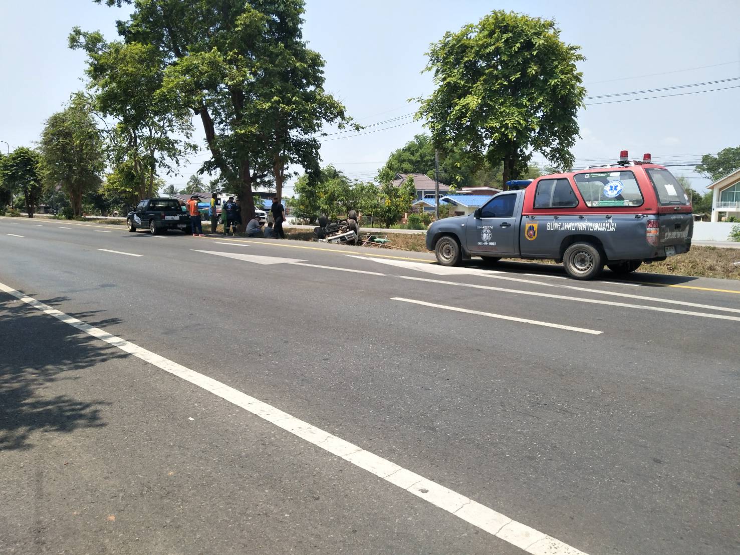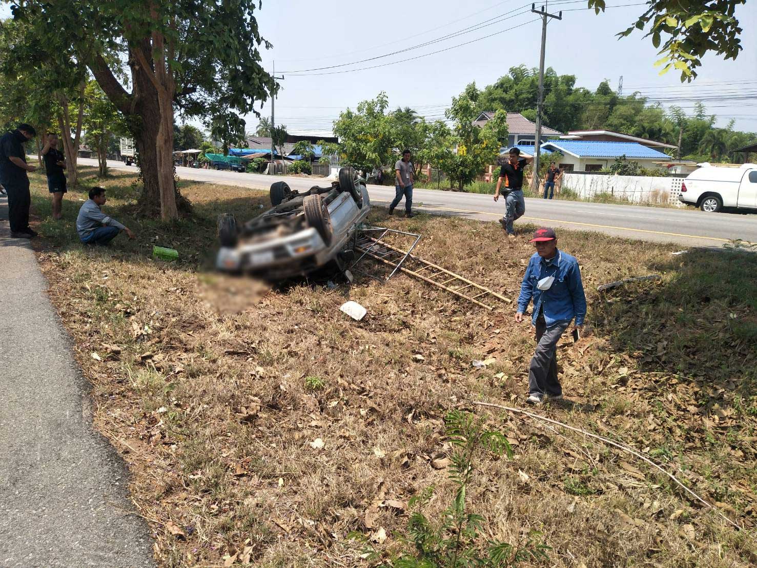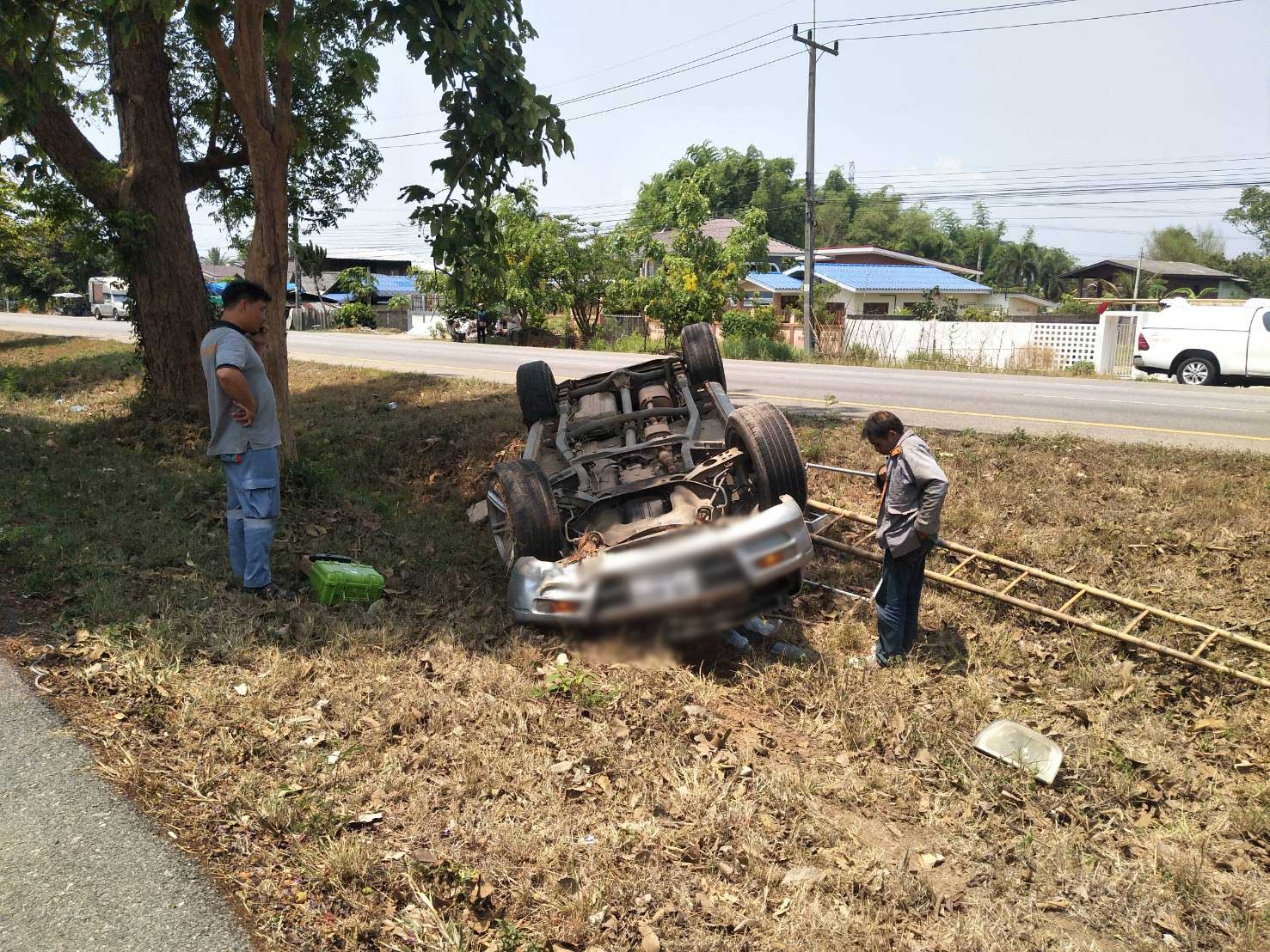 ทั้งนี้ในที่เกิดเหตุพบรถกระบะมิตซูบิชิ สตราด้าหมายเลขทะเบียน กท อุตรดิตถ์พลิกคว่ำหงายท้องชี้ฟ้าสภาพรถเสียหายเกือบทั้งคันพบผู้ได้รับบาดเจ็บ 2 ราย โดยคนขับชื่อนายภูเบศร์อายุ 20 ปี เป็นช่างรับเหมาเดินสายหลักอินเตอร์เน็ตพร้อมเพื่อนที่นั่งมาด้วยกันชื่อนายเอ็มเป็นชาวจังหวัดกำแพงเพชรซึ่งนายภูเบศร์คนขับได้รับบาดเจ็บมีอาการปวดหลังกู้ชีพเทศบาลตำบลบ้านต๊ำและกู้ชีพเทศบาลตำบลแม่ปืมให้การช่วยเหลือเบื้องต้นก่อนนำส่งโรงพยาบาลพะเยา