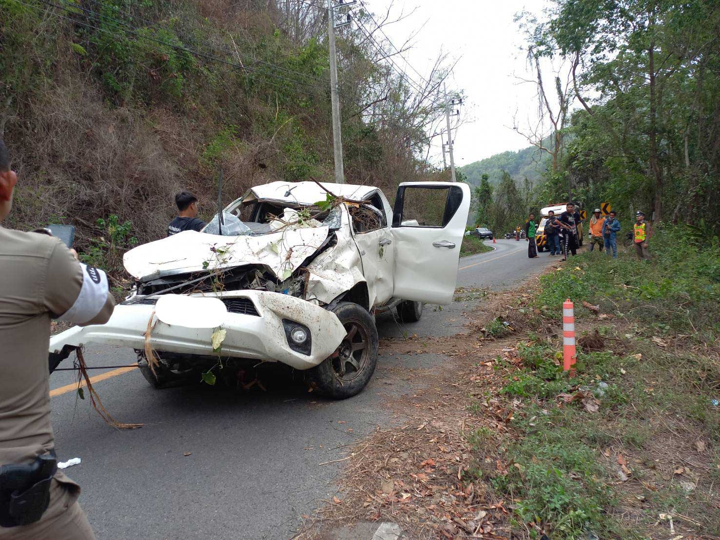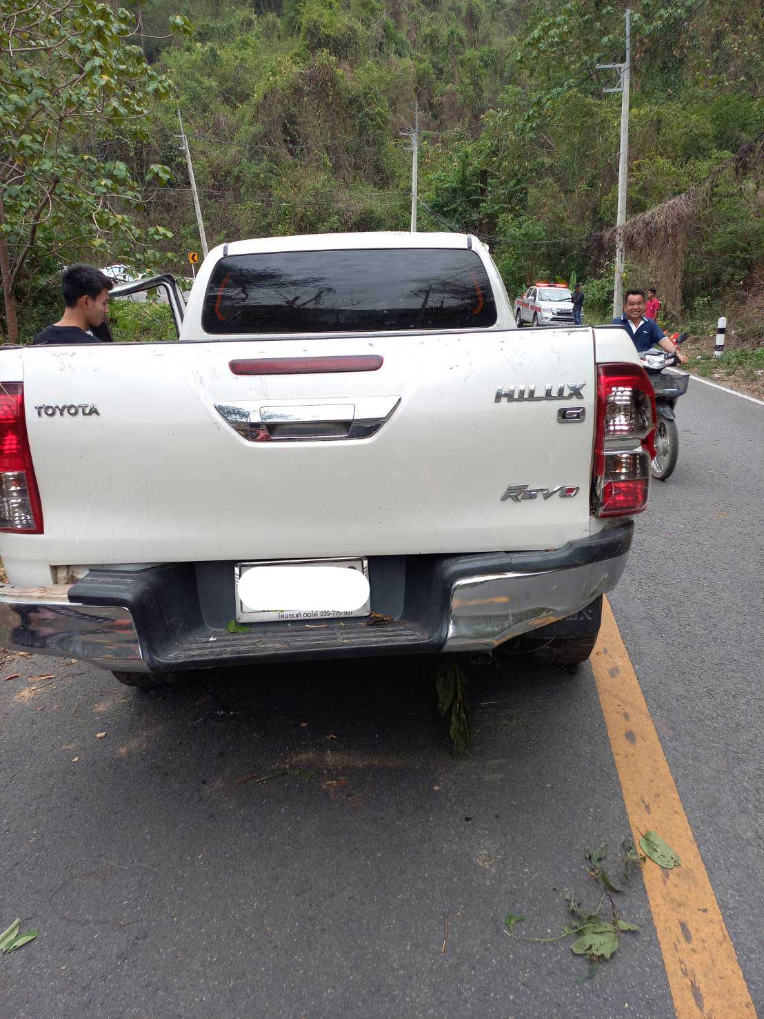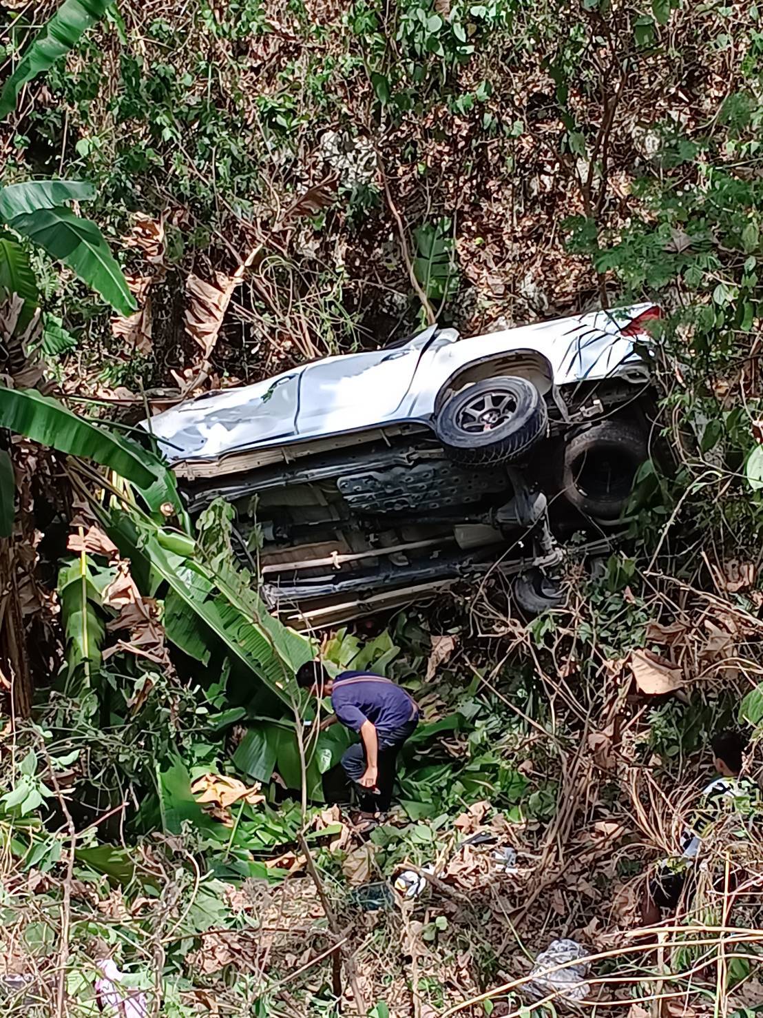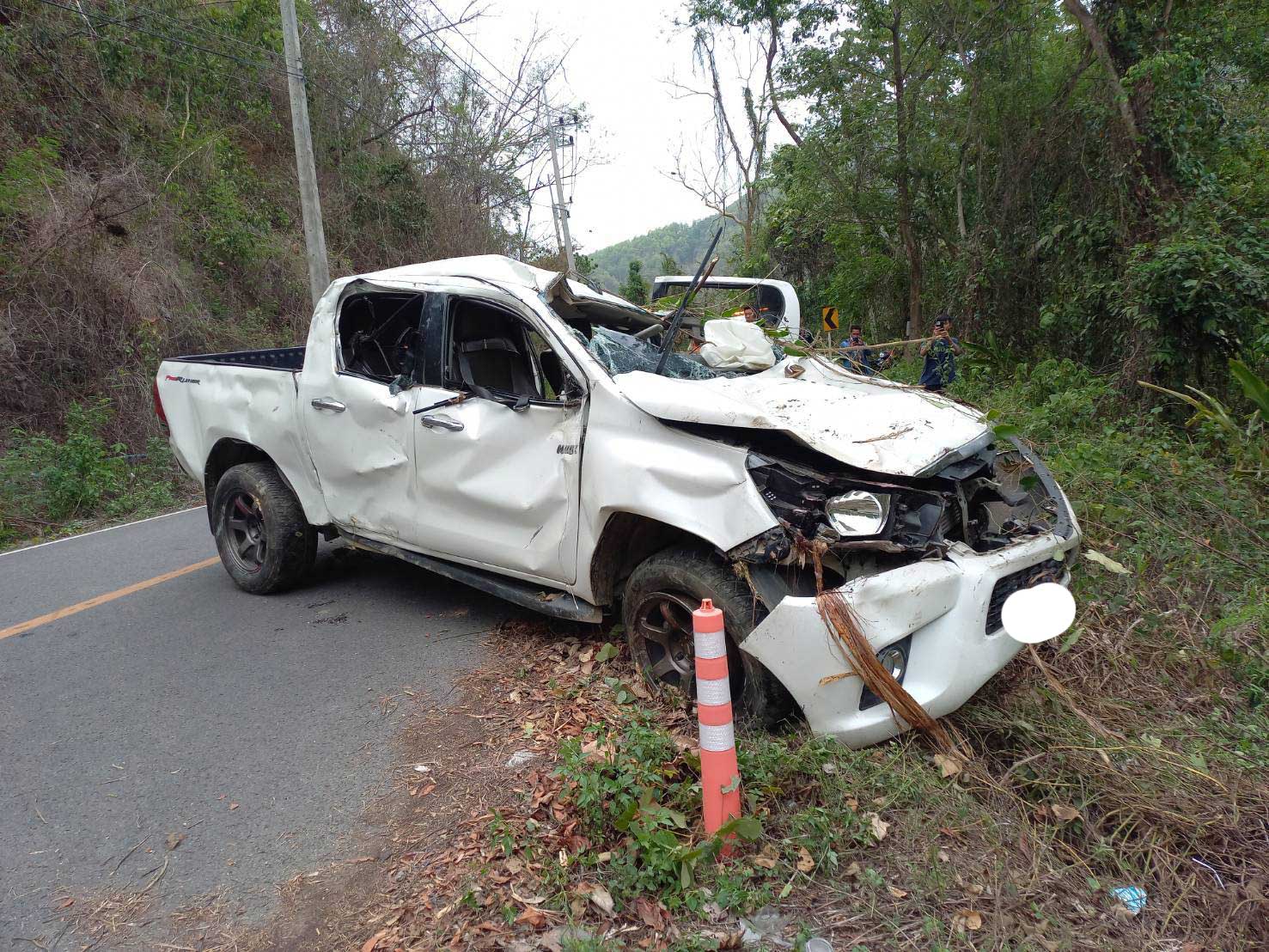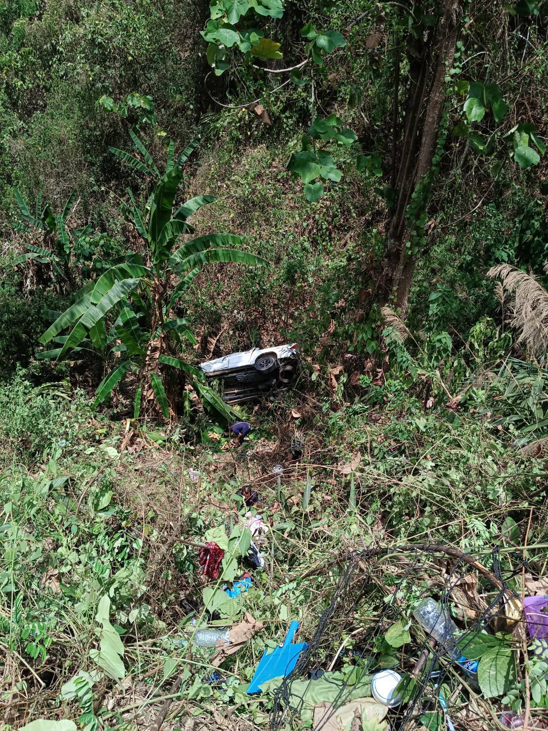 โดยมีผู้ได้รับบาดเจ็บเล็กน้อย จำนวน 5 ราย เป็นชาย 2 คน หญิง 3 คน จนท.กู้ภัยได้นำตัวส่งโรงพยาบาลสมเด็จยุพราชปัว ในที่เกิดเหตุพบรถกระบะ 4 ประตูยี่ห้อโตโยต้า สีขาว ทะเบียน กพ 6263 อยุธยา เสียหลักตกเหวลึกประมาณเกือบ 20 เมตร ข้างทาง ทิศทางจาก อ.บ่อเกลือ มุ่งหน้า อ.ปัว สาเหตุ อยู่ระหว่างเจ้าหน้าที่ตำรวจดำเนินการสอบสวน เบื้องต้นคาด, เบรกแตก , ไม่ชำนาญเสีนทางสภาพทาง ทางโค้งลงเขาลาดชันต่อเนื่อง ทรัพย์สินราชการไม่ได้เสียหาย จึงตรวจที่เกิดเหตุ ทำแผนที่เกิดเหตุ ถ่ายภาพไว้ แล้วนำรถคู่กรณีมาตรวจสภาพที่ สภ.ปัวฯ เพื่อสอบสวนดำเนินการในส่วนเกี่ยวข้องต่อไป