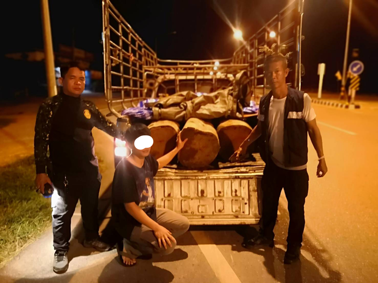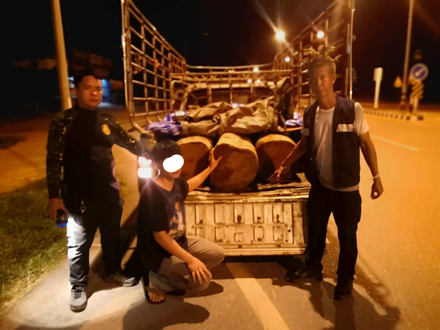 โดยขับมาจากทาง อ.งาว จ.ลำปาง มุ่งหน้าเข้าสู่ อ.สอง จ.,แพร่ คณะเจ้าหน้าที่จึงได้ขับรถติดตามรถคันดังกล่าว และได้ส่งสัญญานให้รถคันดังกล่าวหยุดเพื่อขอตรวจสอบ ก่อนตรวจสอบคณะเจ้าหน้าที่ได้แสดงความบริสุทธิ์ใจให้ชายคนขับรถคันดังกล่าวพอใจ (ทราบชื่อภายหลังคือ นายกิตติศักดิ์ เกี๋ยงหนุน) จนนายกิตติศักดิ์ฯ พอใจ ยินดีและยินยอมให้เจ้าหน้าที่ตรวจสอบ และได้นำคณะเจ้าหน้าที่ตวจสอบ ผลการตรวจสอบรถคันดังกล่าวด้านท้ายกระบะดังกล่าว พบว่าท้ายกระบะปิดคลุมด้วยผ้าใบสีฟ้าขาว ถูกมัดด้วยเชือกอย่างมิดชิด เมื่อคณะเจ้าหน้าที่ทำการเปิดผ้าใบสีฟ้าออกพบผ้าแสถนสีดำ จำนวน 1 ผืน ปิดคลุมอีกชั้นหนึ่ง คณะเจ้าหน้าที่จึงได้ทำการเปิดผ้าแสลนสีดำออก พบว่าท้ายกระบะรถคันดังกล่าวบรรทุกไม้ท่อน จำนวน 2 ท่อน คณะเจ้าหน้าที่ได้ตรวจสอบแล้วปรากฎว่าเป็นชนิดไม้ประดู่ท่อน ไม้ดังกล่าวไม่มีรูปรอยดวงตราของพนักงานเจ้าหน้าที่ของรัฐ หรือเจ้าหน้าที่ภาคเอกชนตีประทับไว้ที่ส่วนต่างๆ ของไม้แต่อย่างใด และไม่มีร่องรอยที่แสดงว่าเคยผ่านการเป็นสิ่งปลูกสร้าง หรือเครื่องเรือน เครื่องใช้อื่นใดมาก่อนแต่อย่างใด