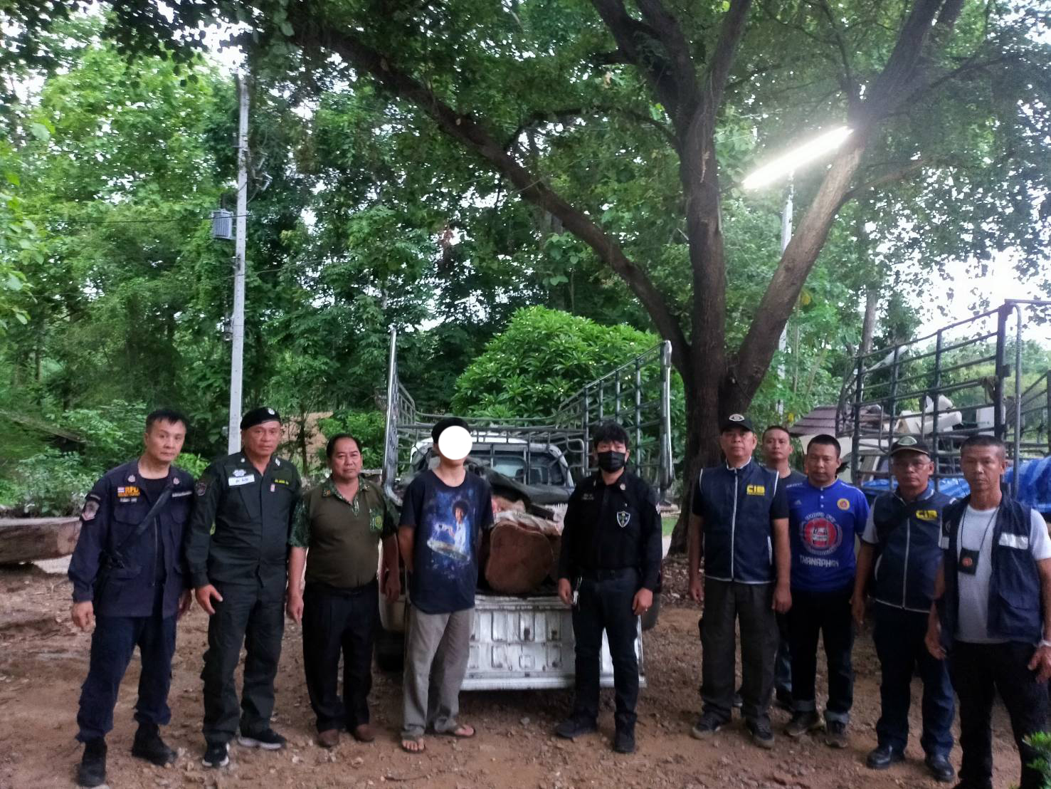 เมื่อเวลา 03.10 น.วันที่ 14 มิถุนายน 2566 นายชุติเดช มีจันทร์ผู้ว่าราชการจังหวัดแพร่ สั่งบูรณาการกำลัง เจ้าหน้าที่ชุดปฏิบัติการพิเศษป่าไม้ สจป.ที่ 3 สาขาแพร่ , เจ้าหน้าที่ตำรวจ ร้อย ตชด.323 กก.ตชด.32(พะเยา), เจ้าหน้าที่ฝ่ายปกครองจังหวัดแพร่ ,หน่วยป้องกันรักษาป่าที่ พร.3 (ดอยหลวง)เจ้าหน้าที่ฝ่ายปกครองอำเภอสอง, เจ้าหน้าที่ตำรวจ สภ.สอง เจ้าหน้าที่ตำรวจ กก.4 บก.ปทส. ประจำจังหวัดแพร่ ได้ร่วมกันทำการจับกุม นายกิตติศักดิ์ เกี๋ยงหนุน อายุ 47 ปี บ้านเลขที่ 118/3 หมู่ 3 ตำบลท่าข้าม อำมาอเมือง จังหวัดแพร่ พร้อมด้วยตรวจยึดของกลาง ไม้กระยาเลย ไม้ประดู่ จำนวน 2 ท่อน ปริมาตร 0.63 ลบ.ม. คิดเป็นค่าเสียหายของรัฐเป็นเงิน 22,050 บาท รถยนต์กระบะ ยี่ห้อ นิสสัน สีน้ำตาล ทะเบียน บม 7577 แพร่ หมายเลขเครื่อง TD23-T107927