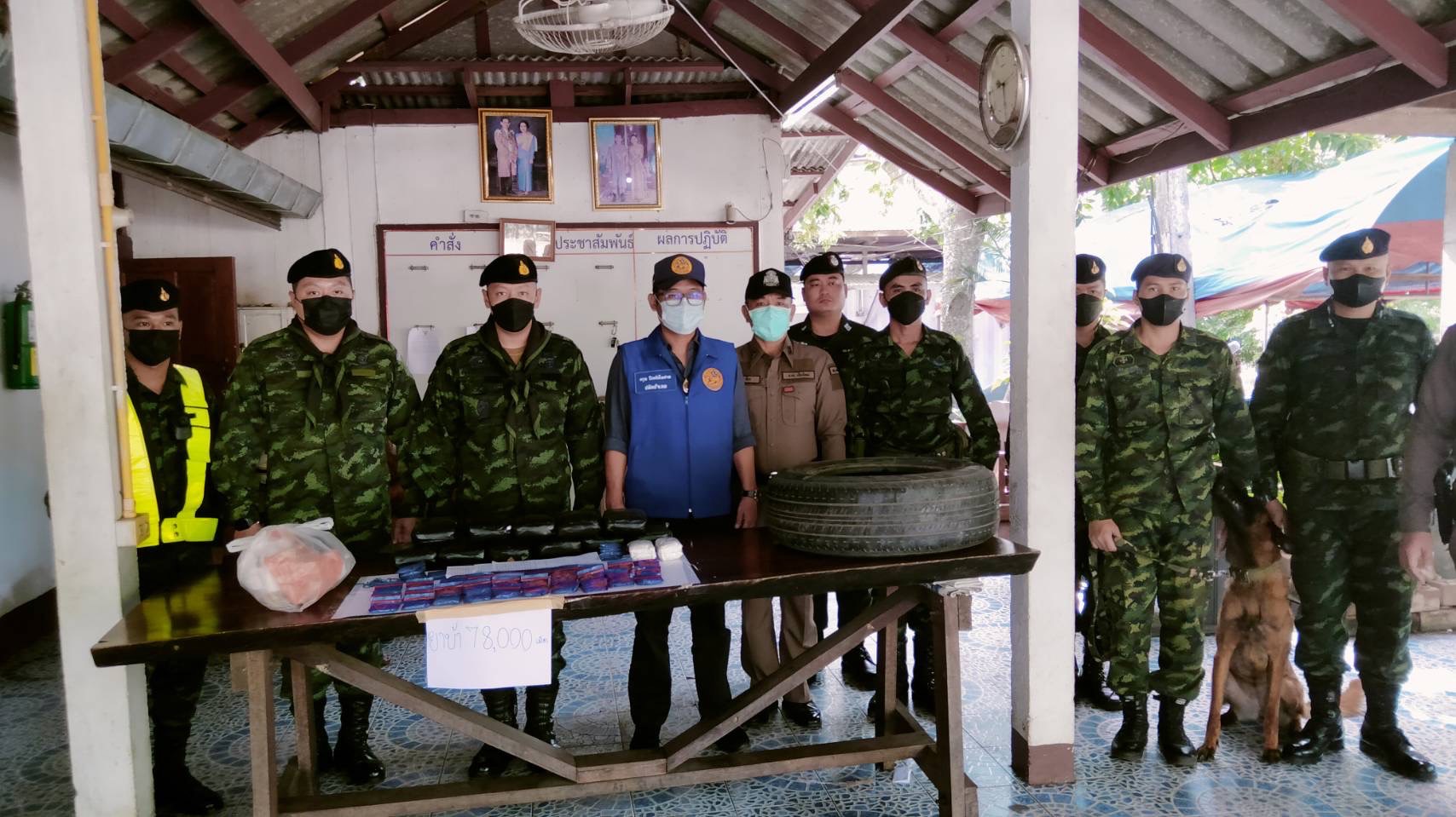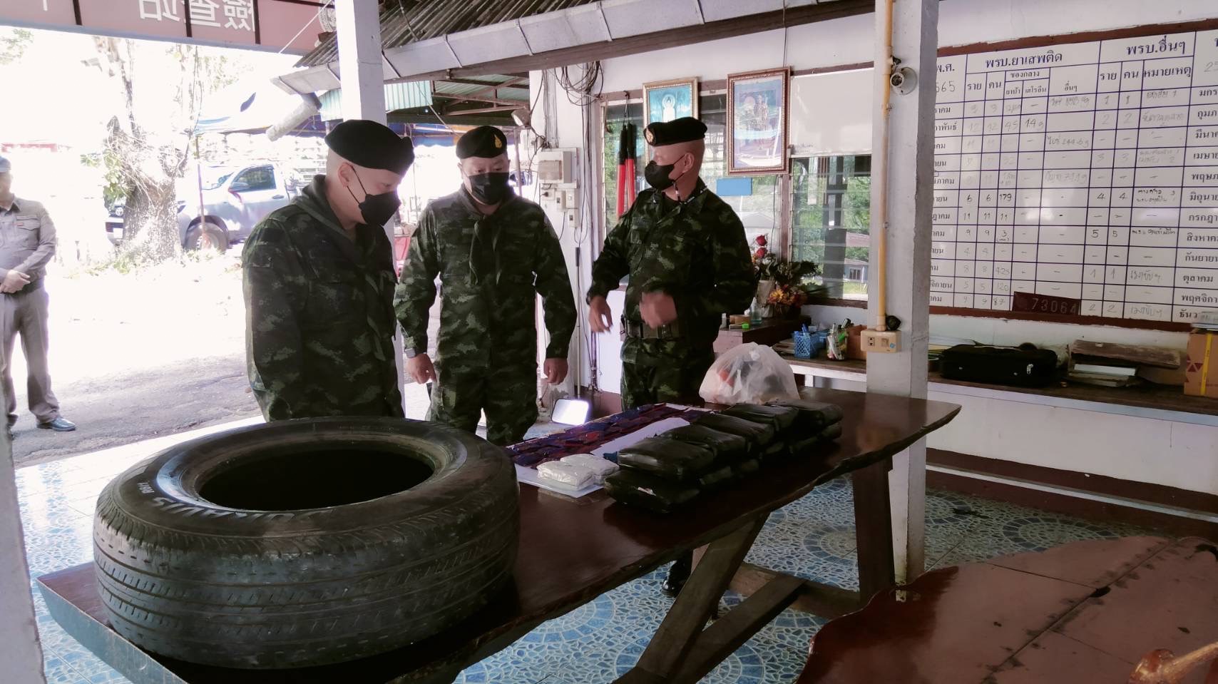 ทางหน่วยจึงได้ทำการตรวจสอบ พบยาเสพติดให้โทษประเภท 1 (ยาบ้า) จำนวน 13 มัด มัดละ 6,000 เม็ด รวม 78,000 เม็ด ซุกซ่อนอยู่ในล้อยางดังกล่าว หน่วยจึงได้ส่งของกลางให้กับ เจ้าหน้าที่ตำรวจ สถานีตำรวจภูธรเชียงดาวเพื่อดำเนินการตามกฎหมายต่อไป