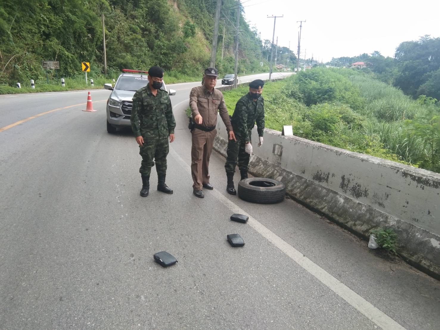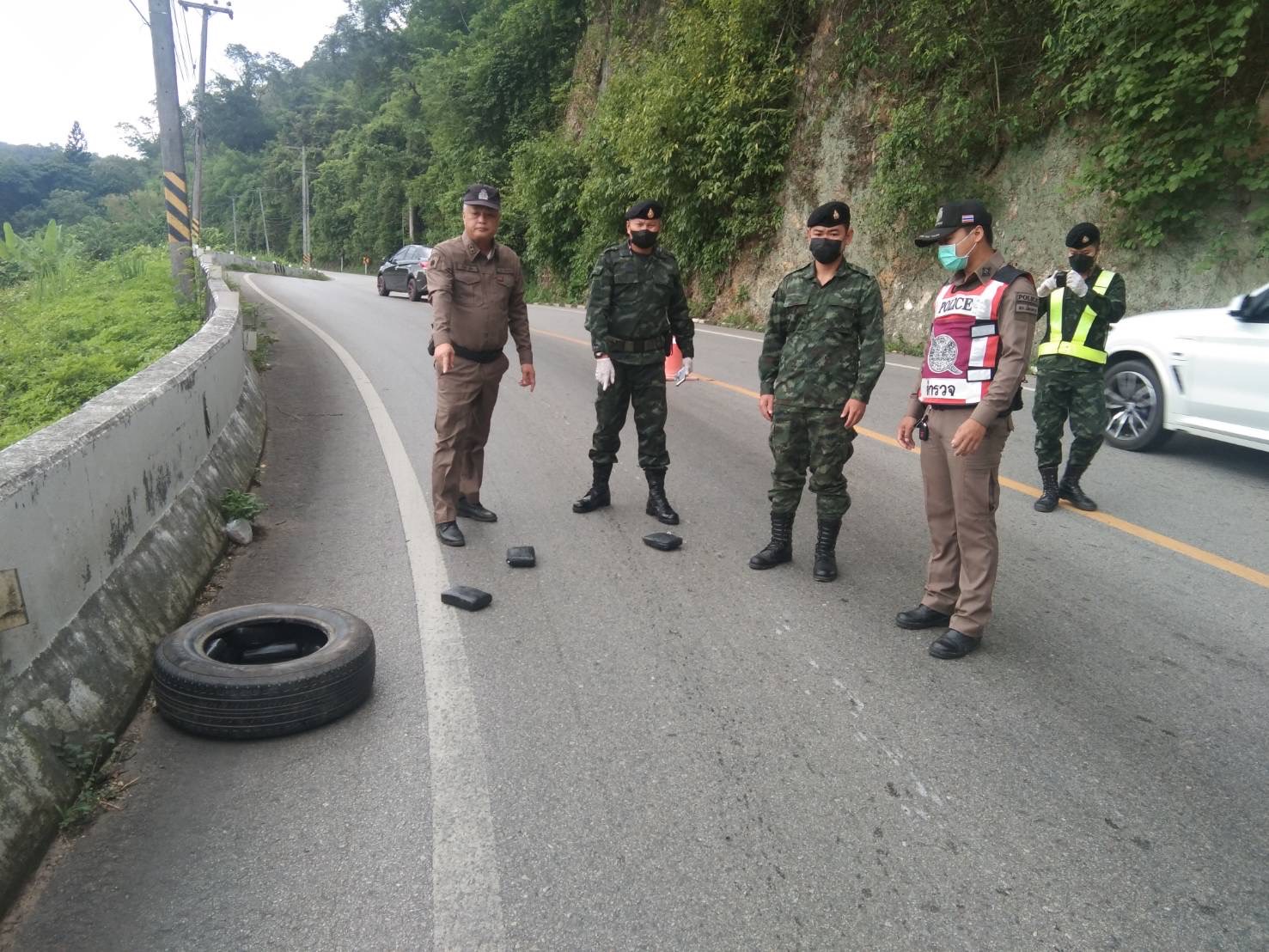 เมื่อวันที่ 27 กรกฎาคม 2566 กองบังคับการควบคุมสกัดกั้นและปราบปรามยาเสพติดที่ 1 กองกำลังผาเมือง ร่วมกับตำรวจในพื้นที่ ปฏิบัติภารกิจตั้งจุดตรวจเพื่อป้องกันและสกัดกั้นการกระทำผิดตามพระราชบัญญัติยาเสพติด บริเวณ ด่านตรวจแก่งปันเต๊า ต.แม่นะ อ.เชียงดาว จ.เชียงใหม่ ได้รับแจ้งจากประชาชนว่าพบเห็นล้อยางตกหล่นบริเวณริมถนน บ้านสบคาบ ต.แม่นะ อ.เชียงดาว จ.เชียงใหม่