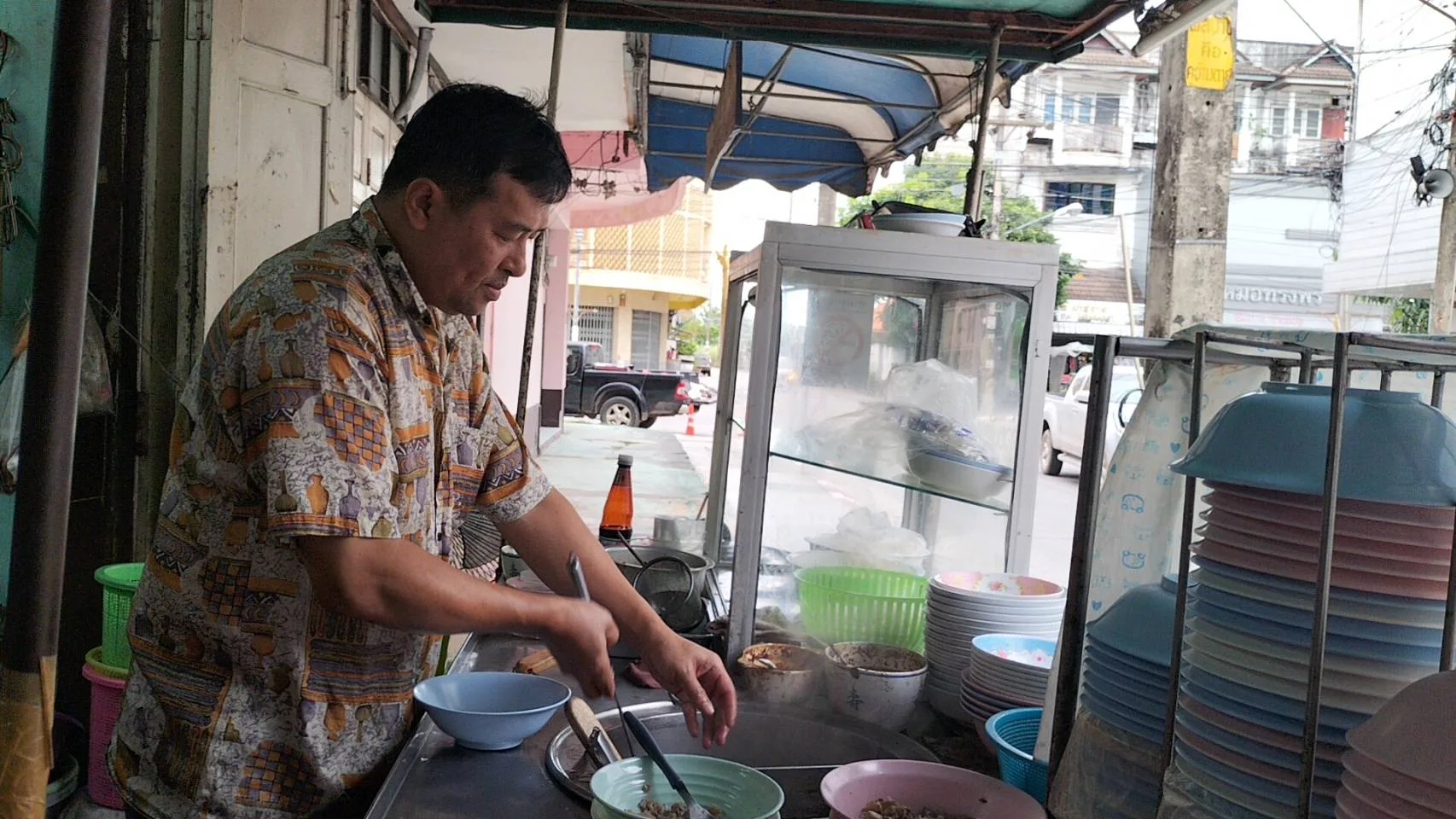 ผู้สื่อข่าวจึงได้ไปสอบถามนางขวัญใจ นพรัตน์ อาย 62 ปี เจ้าของร้านก๋วยเตี๋ยวเจ็ดยอด ต.เวียง อ.เมืองเชียงราย จ.เชียงราย เผยว่า ตอนเกิดเหตุเป็นช่วงเวลาประมาณ 2 ทุ่มกว่าของวันที่ 10 พ.ย. ที่ผ่านมา ซึ่งเป็นเวลาที่ตนใกล้จะปิดร้าน ได้มีชายคนหนึ่ง อายุประมาณ 20 กว่าปี สวมเสื้อกันหนาวสีดำแถบขาว กางเกงขาสั้น เดินเข้ามาสั่งผัดกระเพราหมูหมักพิเศษไข่ดาว จากนั้นก็เดินไปเปิดน้ำอัดลมมาดื่ม พอกินอาหารเสร็จ ชายหนุ่มคนดังกล่าวก็สั่งข้าวกระเพราแบบเดิม บอกว่าจะเอาไปฝากเพื่อน และทำทีลุกเดินคุยโทรศัพท์อยู่แถวหน้าร้าน ตนก็ยังไม่ได้สนใจ เพราะไปทำอาหารตามที่ชายดังกล่าวสั่ง