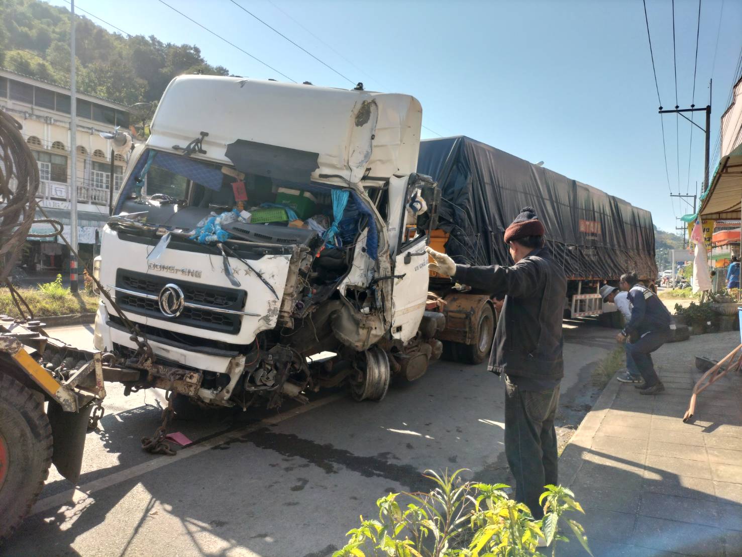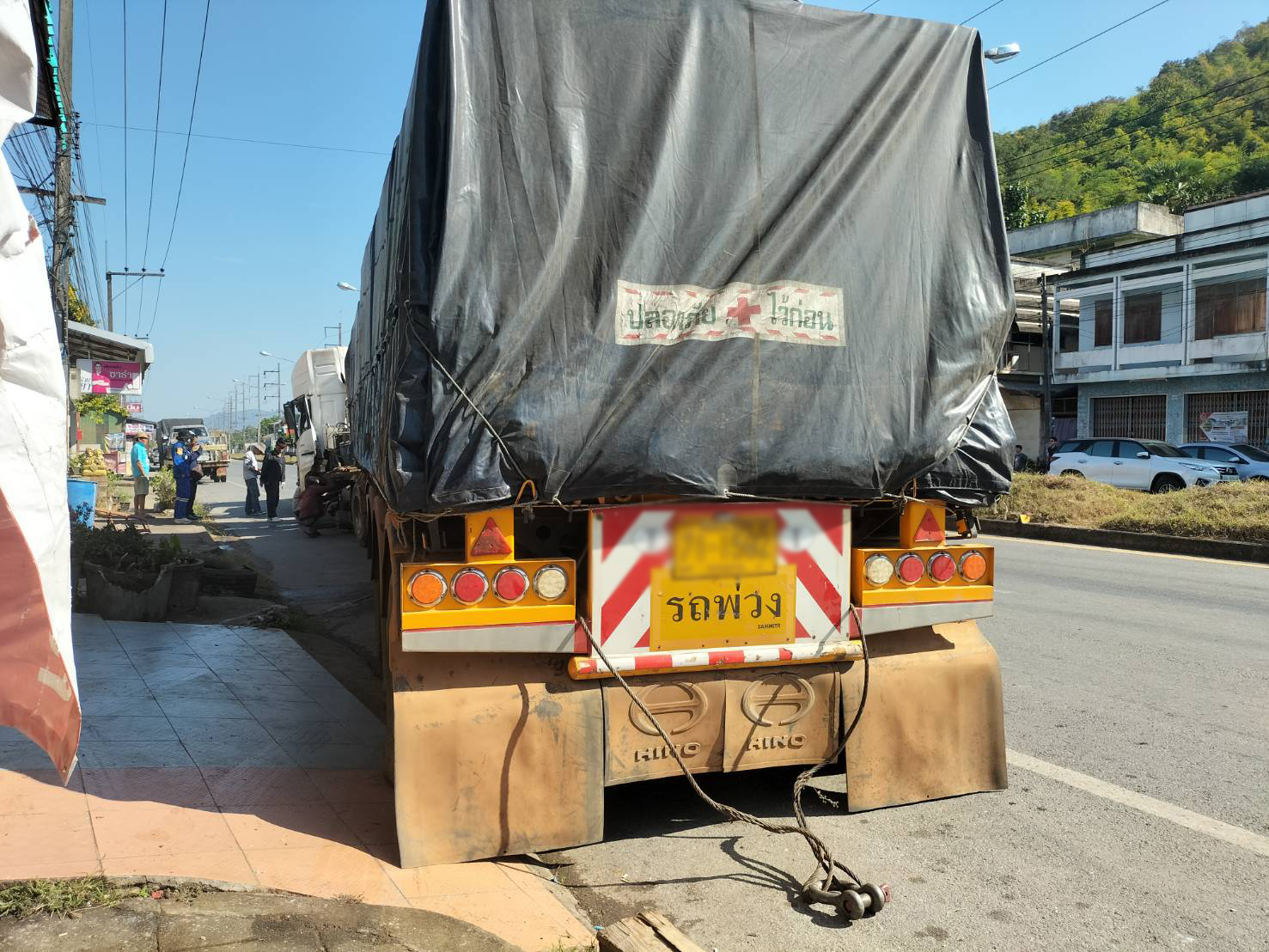 นายสมชาย(สงวนนามสกุล) อายุ 60 ปี อาศัยอยู่ ม.10 ต.ครึ่ง อ.เชียงของ จ.เชียงราย เจ้าของรถกระบะยี่ห้ออีซูซุ สีเทา ทะเบียน เชียงราย ผู้เสียหายเล่าว่า วันนี้เป็นแรกที่ตนเปิดร้าน หลังจากปิดตั้งแต่ก่อนปีใหม่และติดงานศพภายในหมู่บ้านต่อเนื่องกันมา โดยขณะเกิดเหตุกำลังยกของขึ้นรถ และรอรับของที่แม่ค้ากำลังเอามาส่ง จู่ๆก็มีรถพ่วงคันดังกล่าวพุ่งมากวาดเอารถของตนไปต่อหน้าต่อตา โชคดีที่ตนไม่ได้รับบาดเจ็บอะไร แต่รถพังเสียหาย ไม่ทราบว่าจะซ่อมได้หรือเปล่า ส่วนสินค้าที่ใส่ไว้ในรถมูลค่าประมาณ 7,000 บาทก็ได้รับความเสียหายไปด้วย