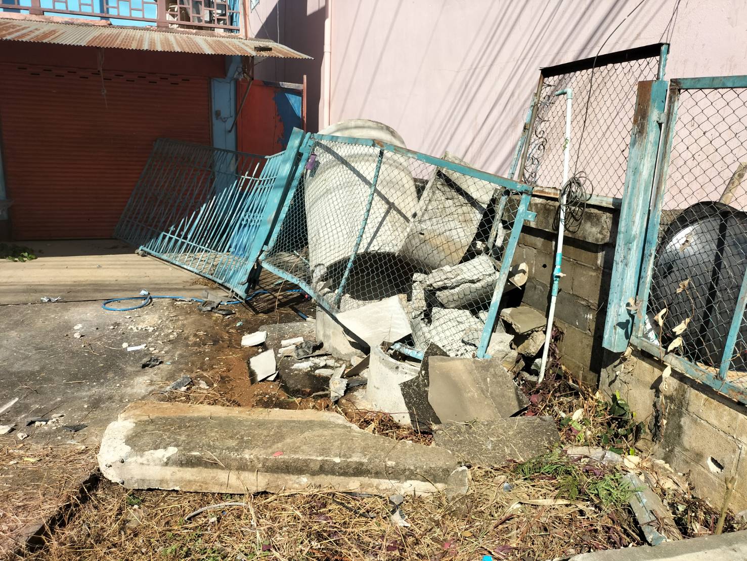 ความเสียหายเบื้องต้น มีหัวรถเทรลเลอร์พ่วงยี่ห้อ DONGFENG ทะเบียนขอนแก่น รถกระบะยี่ห้ออีซูซุ สีเทา ทะเบียน เชียงราย ประตูรั้วบ้านข้างร้านขายของ ไม่ทราบบ้านเลขที่ และทรัพย์สินหน้าร้านนิทัศน์ จำหน่ายเฟอร์นิเจอร์และอุปกรณ์ไฟฟ้า ของนายสุทัศน์ มูลชนะ เลขที่ 299 ม.4 ต.บุญเรือง ได้รับความเสียหาย ส่วนทรัพย์สินทางราชการมีป้ายชื่อหมู่บ้านถูกชนเสียหาย เบื้องต้นเจ้าหน้าที่แจ้งข้อหานายนฤพนธ์ ขับรถโดยประมาทหวาดเสียว ทำให้ทรัพย์สินของผู้อื่นได้รับความเสียหาย