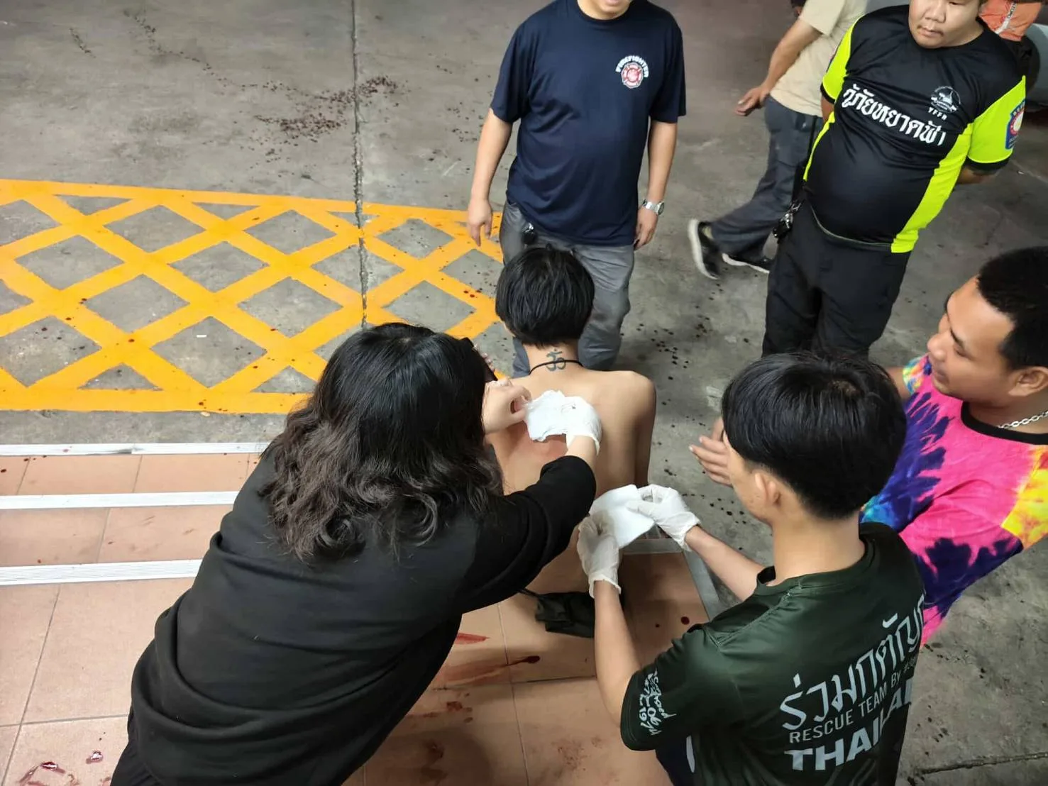 โดยรายแรก เป็นหญิงสาววัยรุ่น อายุประมาณ 18-20 ปี ถูกอาวุธมีดฟันเข้าที่บริเวณข้อแขนซ้ายจนขาด ทางเจ้าหน้าที่ต้องช่วยปฐมพยาบาลห้ามเลือด และรีบนำตัวส่งโรงพยาบาล ส่วนรายที่สอง เป็นชายวัยรุ่น อายุไล่เลี่ยกับผู้บาดเจ็บรายแรก ถูกอาวุธมีดฟันเข้าบริเวณนิ้วชี้ขาด ทางเจ้าหน้าที่ได้รีบนำตัวส่งโรงพยาบาลเช่นกัน ขณะที่รายที่สามเป็นวัยรุ่นชาย อายุไล่เลี่ยกัน ถูกอาวุธมีดฟันเข้าบริเวณกลางหลังได้รับบาดเจ็บเล็กน้อย ทางเจ้าหน้าที่กู้ภัยได้ช่วยเหลือปฐมพยาบาล และทางเจ้าหน้าที่ตำรวจได้ทำการสอบปากคำผู้บาดเจ็บ
