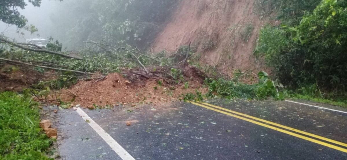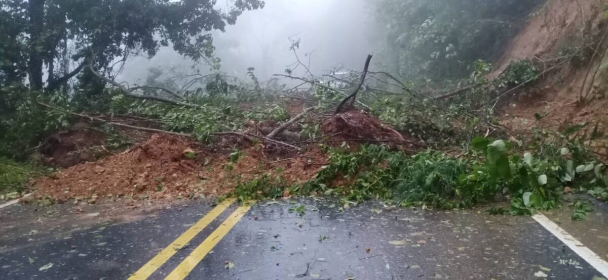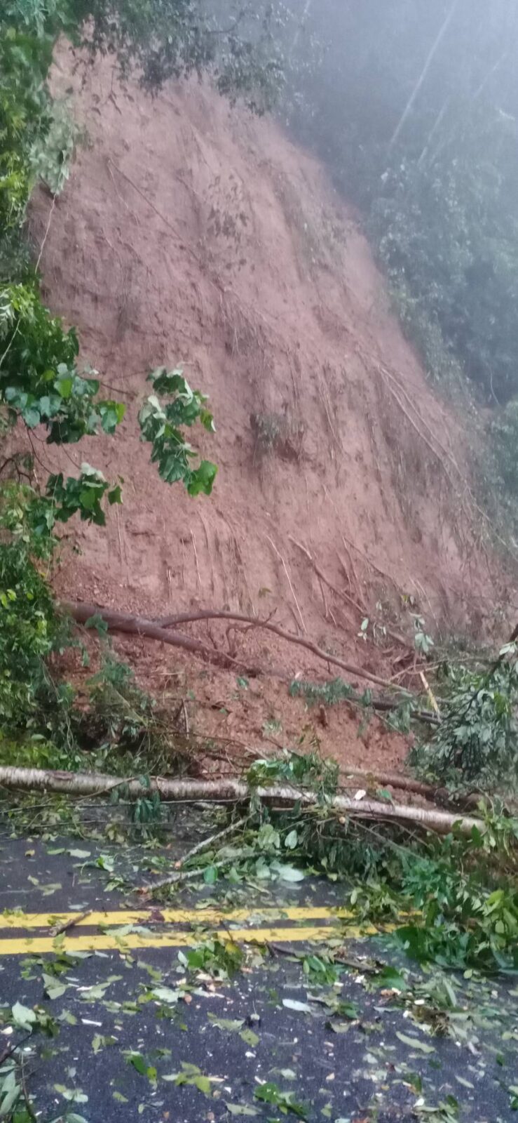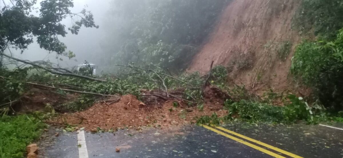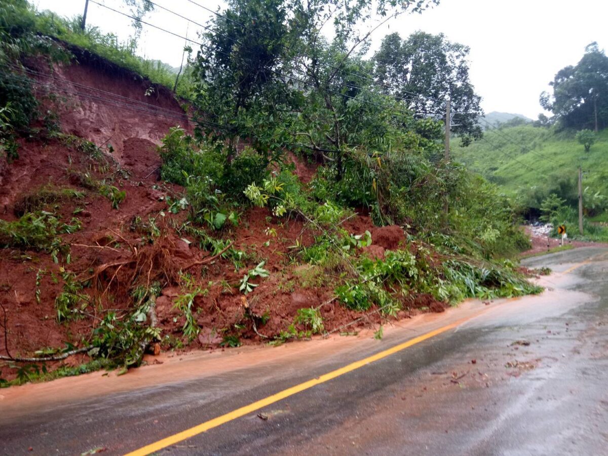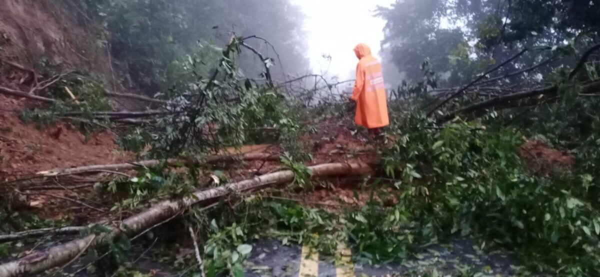 สถานการณ์ดินสไลด์ที่ได้รับผลกระทบจาก พายุโซนร้อน “มู่หลาน” ทำให้เกิดเหตุฝนตกหนักทำให้ดินด้านside slope สไลด์ ปิดทับผิวจราจร