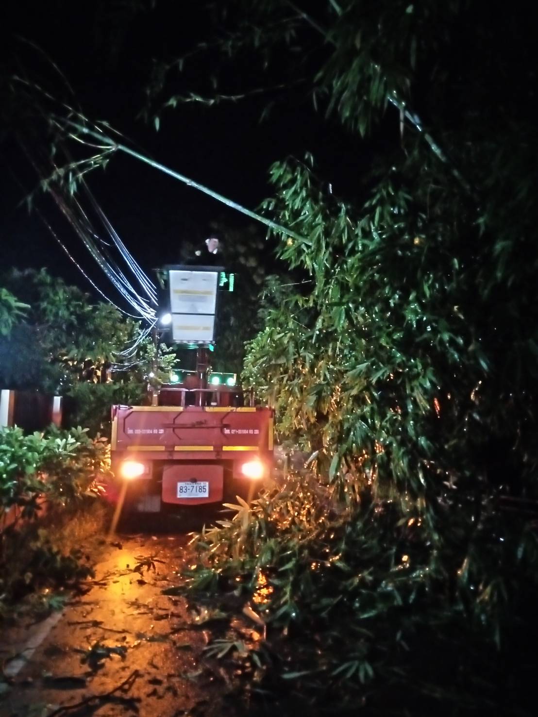 ฝนตกลมแรงต้นไม้ล้มขวางถนน