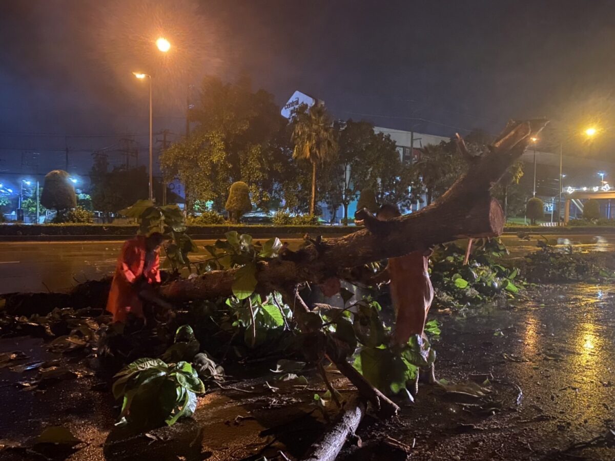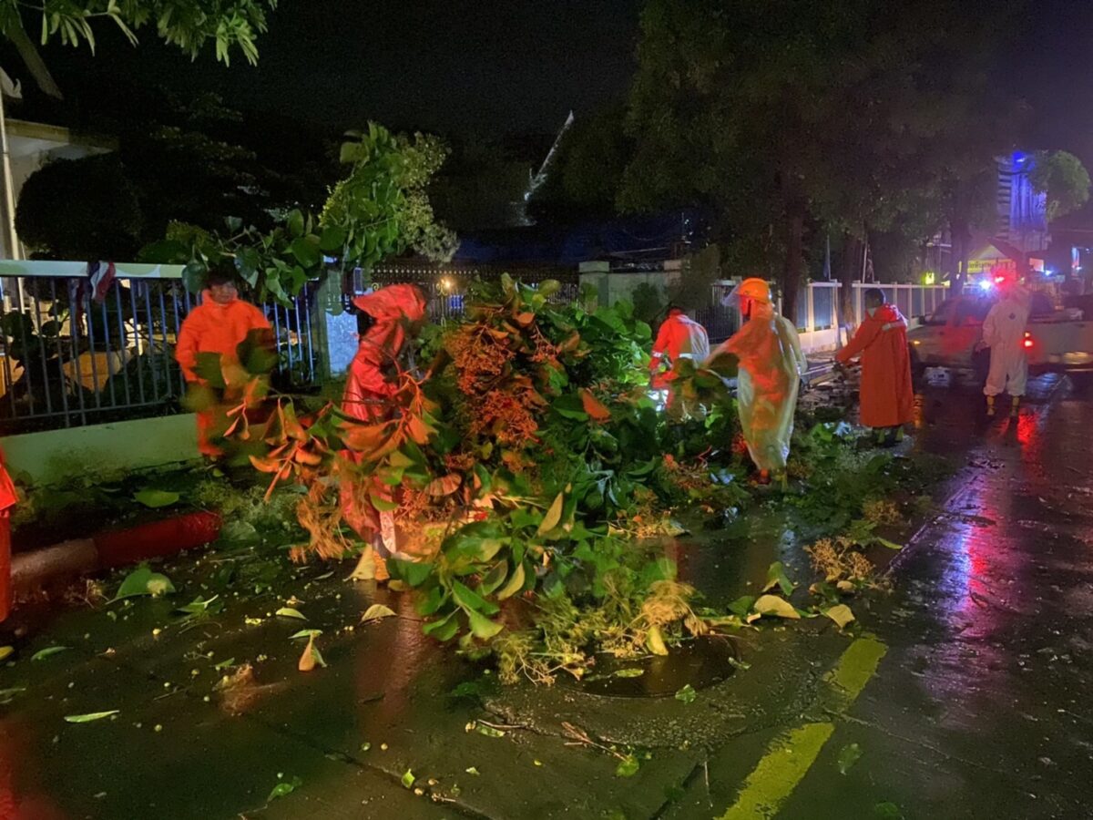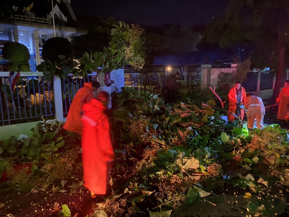 เจ้าหน้าที่งานป้องกันฯ เร่งเคลียร์พื้นที่ที่ได้รับความเสียหายจากพายุ “หมาอ๊อน” ตลอดทั้งคืน